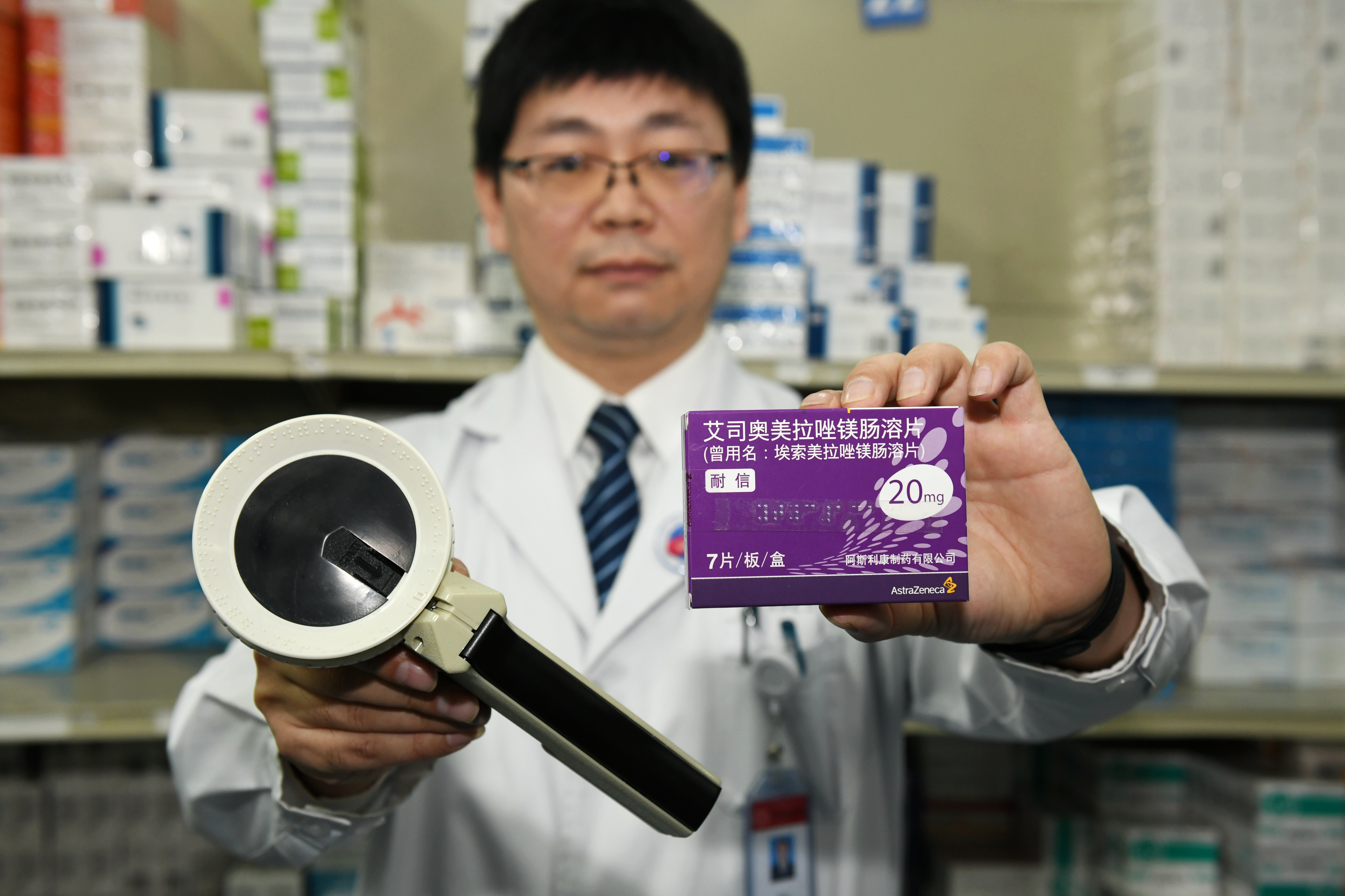 1月2日,陕西省人民医院临床药师郭振军展示盲人合理用药系统的设备和贴有盲文说明的药品。 针对盲人用药的实际困难,陕西省人民医院创新研发了盲人合理用药系统。该系统由盲文打印机、盲人用药提醒设备、盲人合理用药的穿戴设备及App等组成。盲人患者不仅可以通过这一系统自主求医问诊,还可以通过药品上的盲文说明得到服药指导。其中盲人打印机已经应用于门诊,累计服务盲人300余人次,极大地解决了盲人看病用药难问题。 新华社发