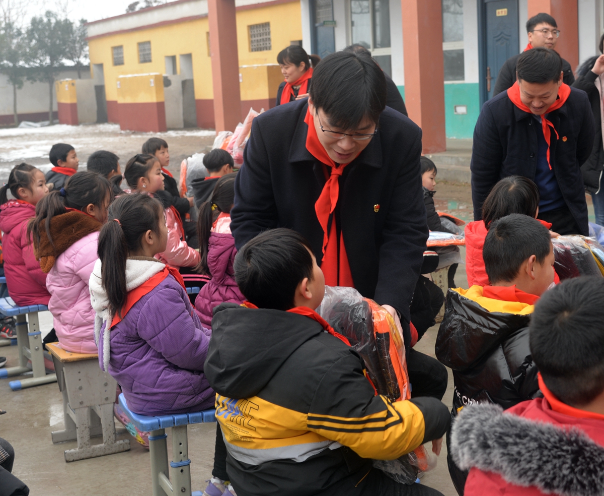 1月8日上午,鄢陵农商银行与共青团鄢陵县委在该县只乐镇寺东张小学联合开展“温暖冬天·与爱‘童’行”爱心物资捐赠活动。活动现场,该行10余名志愿者向该校学生发放了书包、文具等爱心物品,并向50名贫困学生发放了崭新的衣物。随后,该校学生为农商银行的志愿者戴上了红领巾,并敬了个标准的少先队队礼。尽管是寒冬腊月,但在场的人心里都是暖洋洋的。 近年来,鄢陵农商银行积极奉献社会,开展各项社会公益活动,勇担社会责任,并充分发挥金融扶贫优势,为打赢脱贫攻坚战贡献了应有的力量,树立了良好的社会形象。 晋科杰 摄
