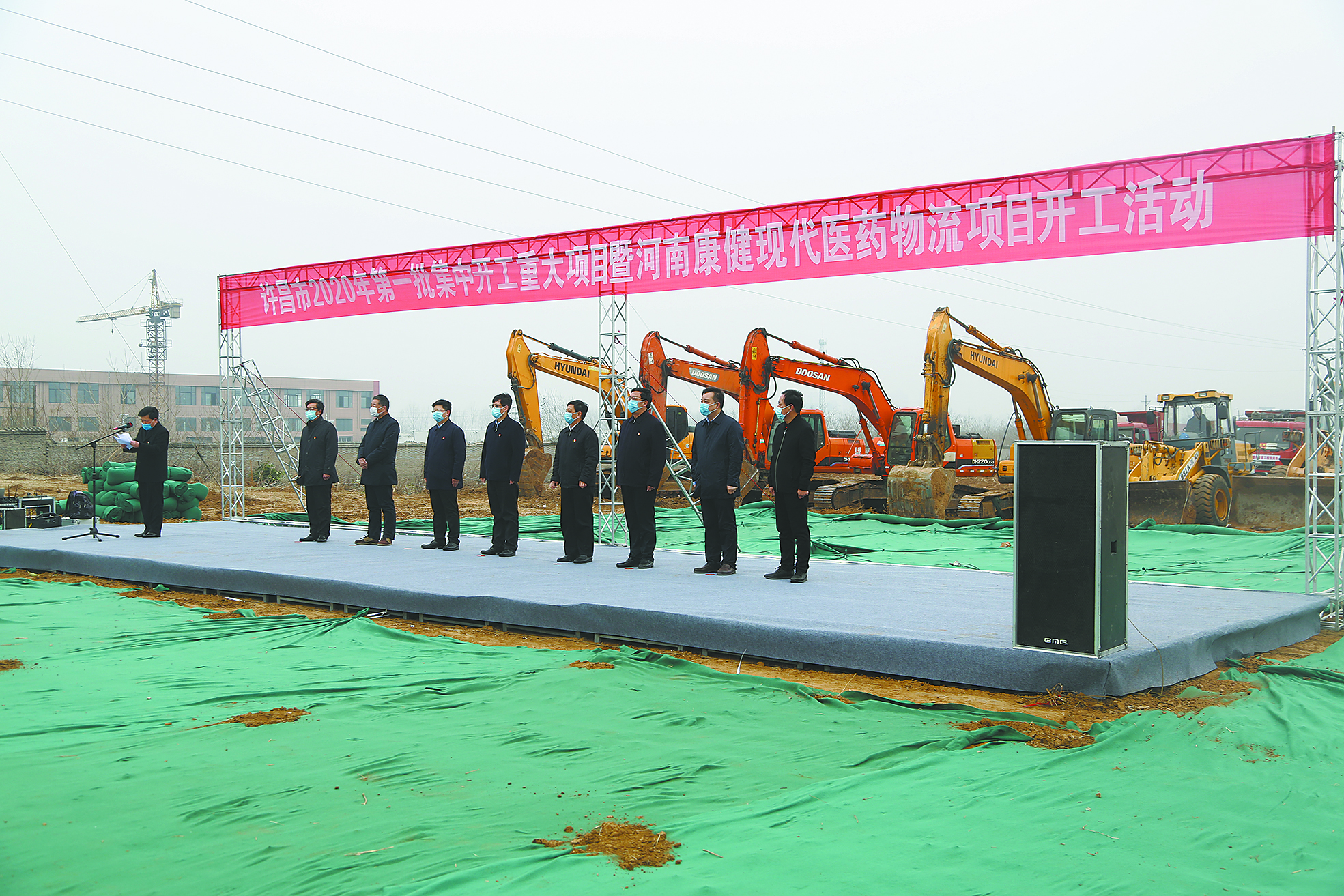 本报讯(记者 胡晨 通讯员 李晓星)2月26日上午,许昌市2020年第一批集中开工重大项目暨河南康健现代医药物流项目开工活动在禹州市举行。