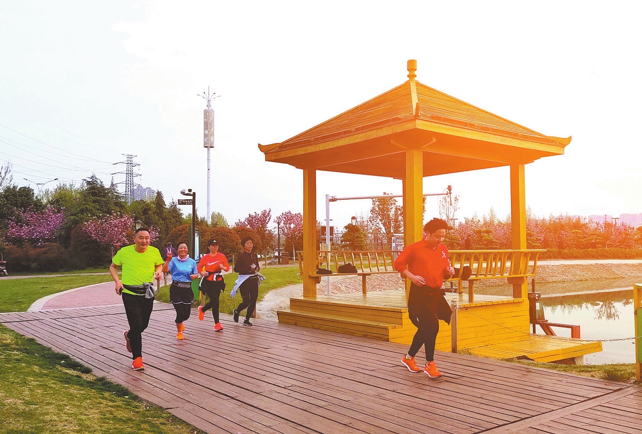 连日来,我市天气持续晴好,各游园、公园繁花似锦、春意盎然,许多市民走出家门或赏景,或运动,享受良好生态带来的福祉,感受春日的美好。图为近日市民在鹿鸣湖畔跑步。 寇旭静 摄