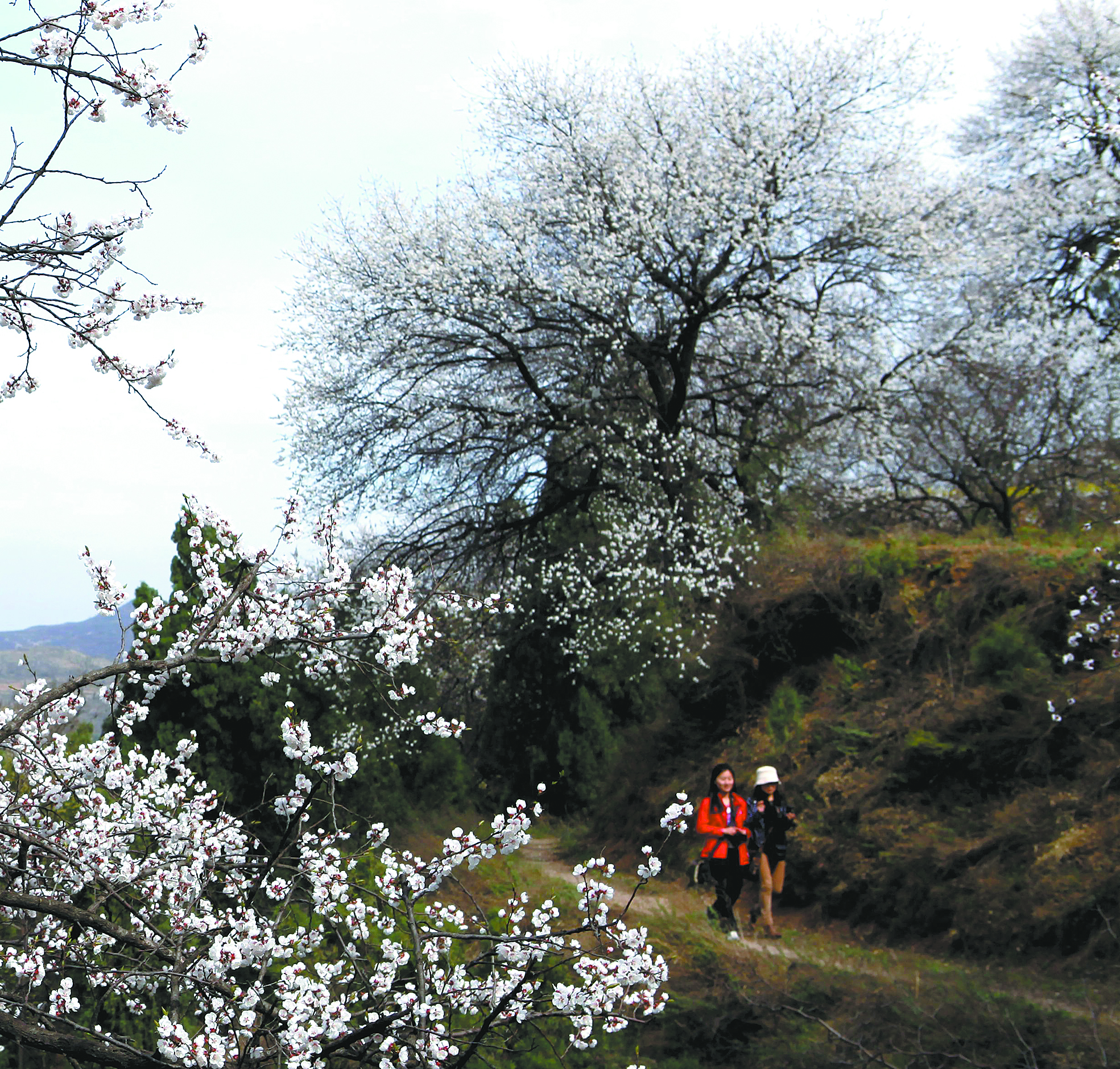 ◀春风融融,随着全国疫情防控形势逐步向好,近日,人们纷纷走到户外,亲近自然。图为游客在禹州踏青赏花。 王增阳 摄