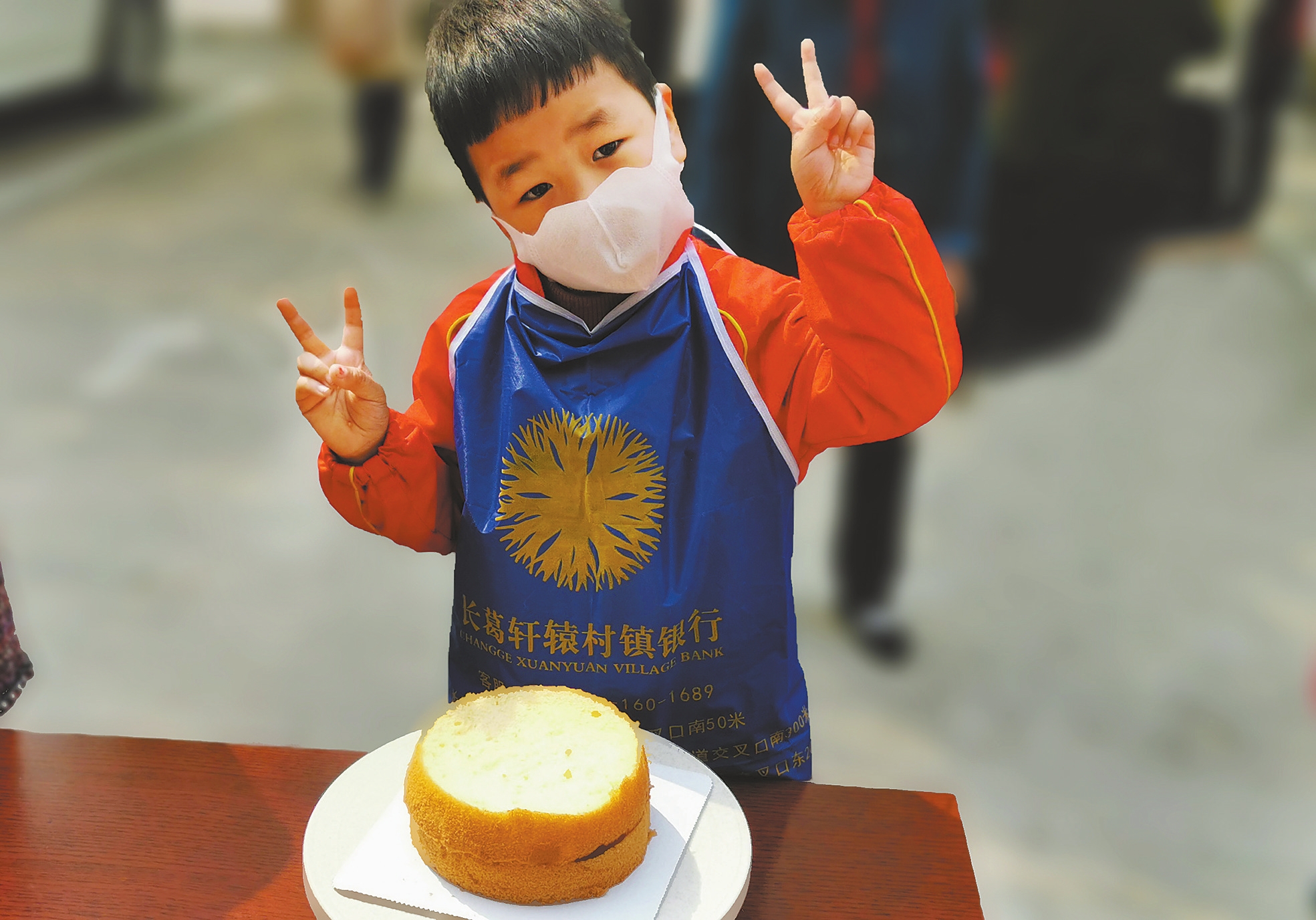 4月8日,在做好疫情防控工作的同时,长葛轩辕村镇银行金庄支行邀请十几名小朋友,参加该支行“行庆五周年,蛋糕亲子DIY”活动。 孙飞亚 摄