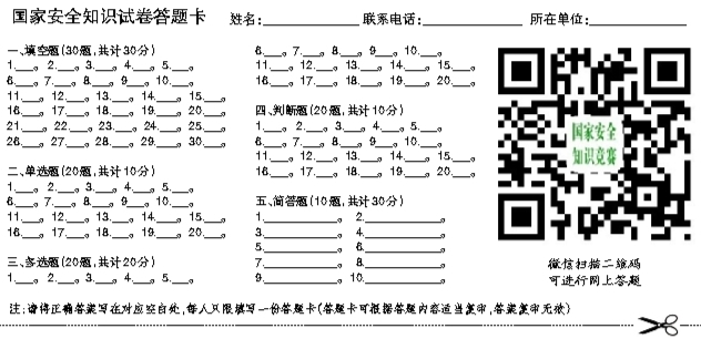 请各地各单位将答题情况与宣传活动组织开展情况一并报送当地党委国安办。