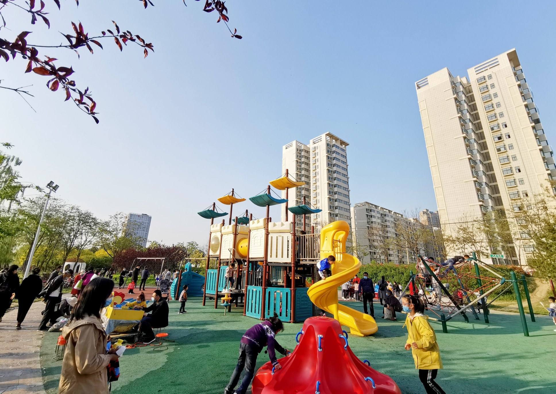 4月19日,市民在市区街头游园进行户外活动。天气宜人、春光正好,市民纷纷来到户外,呼吸新鲜空气,感受健康生活。 本报记者 乔利峰 摄