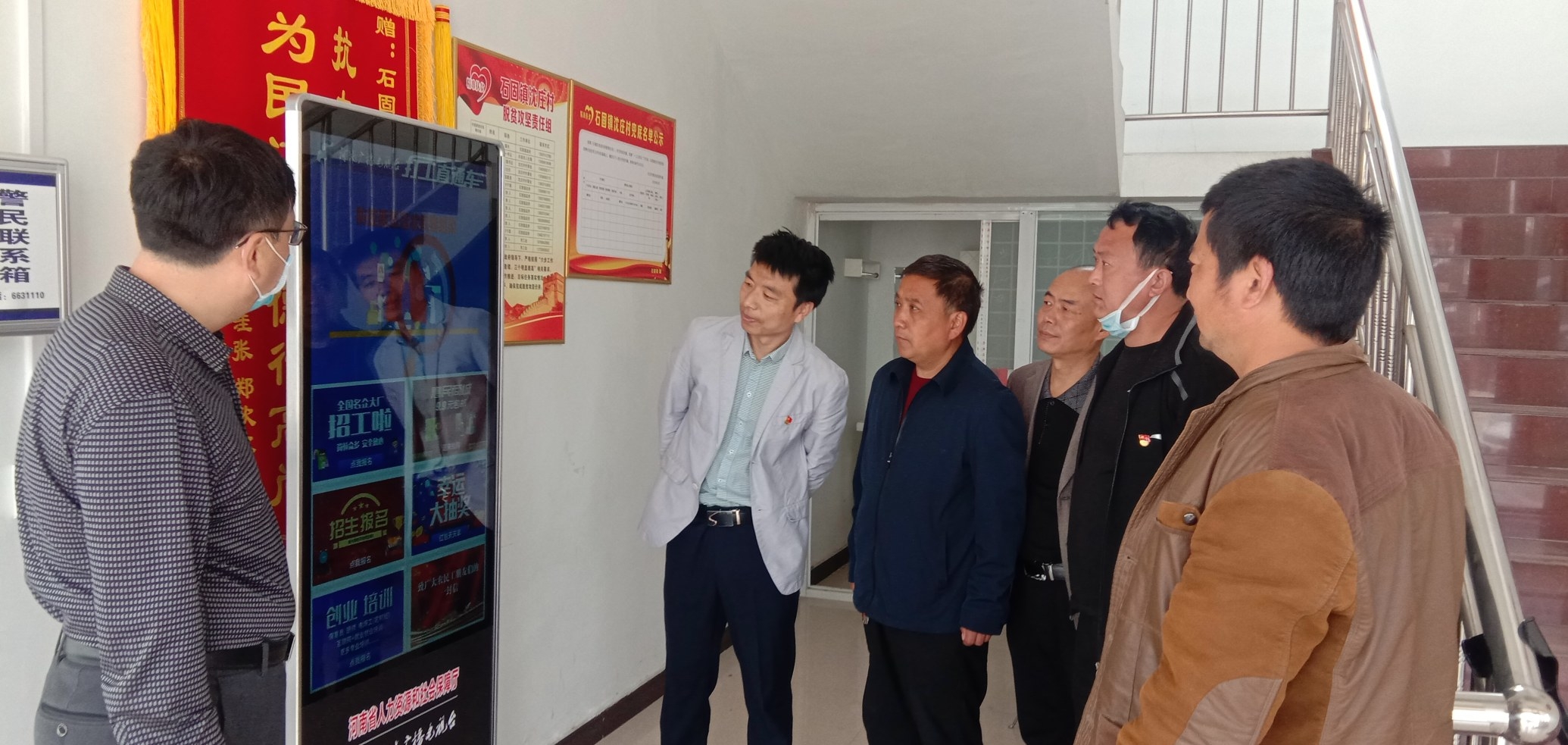 受疫情影响,不少企业停工停产。如何让群众在“家门口”找到心仪的工作?近日,市人社局为长葛市石固镇沈庄村送一台基层智慧平台设备——“打工直通车”。据了解,该设备设有转移就业政策宣传、劳务输出一键式报名、技能培训一键式报名、本地企业用工信息推介、扶贫产品网上展销、劳动维权等10余个特色模块,群众不仅可以随时按照个人的需求查看市内外、省内外的热门岗位,还可报名参加人社部门开展的免费职业技能培训,轻松实现快速就业。 图为市人社局驻沈庄村第一书记唐慧杰(左一)、周晓浩(左二)为群众介绍“打工直通车”使用方法。胡晨 摄
