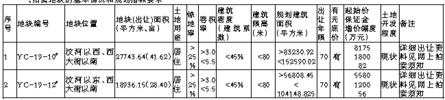 YC-19-10#(现状)、 YC-19-12#(现状)二宗地拍卖时间为: