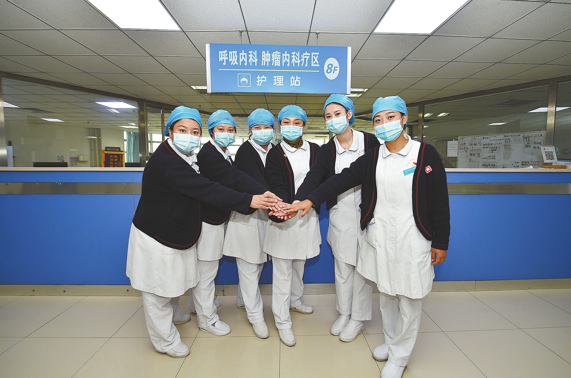 5月11日,长春市人民医院呼吸内科护士许晓秋、邹函书、张静、王玉莲、宫睿阳、李京(从左至右)在呼吸内科合影。 国际护士节前夕,在长春市人民医院呼吸内科,曾前往湖北武汉抗击疫情的六名护士与往常一样在病房里忙碌。她们为患者筛查、叩背、排痰,不间断地轮流做查房护理,负责入院患者及家属的核酸检测和采集咽拭子等工作。 这六名护士从武汉回到家乡并结束医学观察后,又立即返回到工作岗位。护士长王玉莲说:“在武汉并肩作战的日子,让每名成员都倍加珍惜和热爱护士这份职业。” 新华社记者 林宏 摄