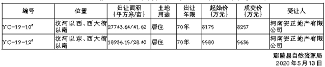 河南省自然资源网上交易鄢陵县2020第三批国有建设用地使用权拍卖出让成交结果公示