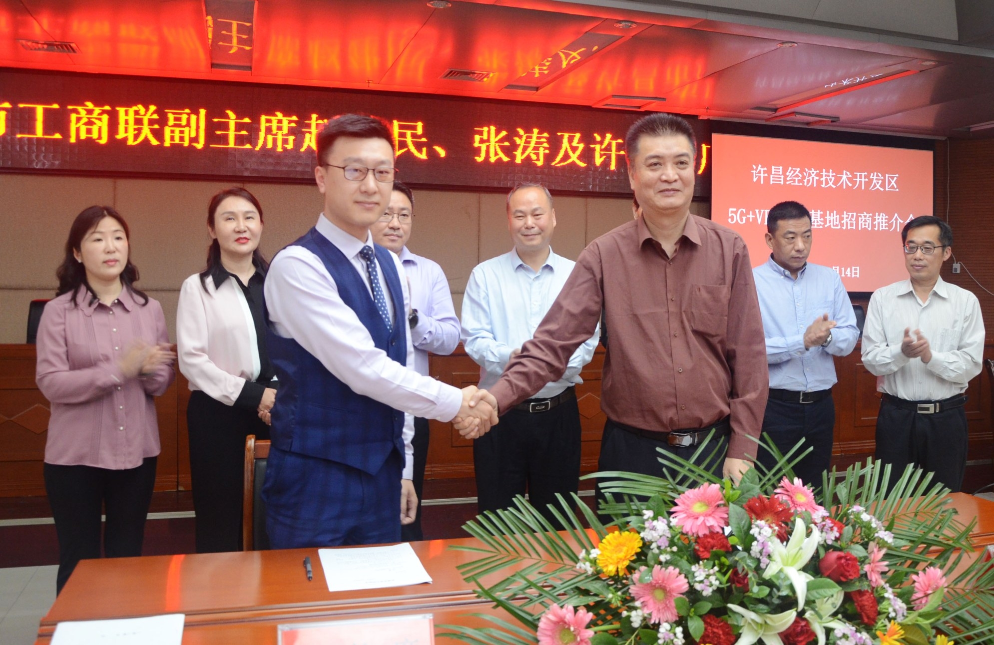 5月18日,国家许昌经济技术开发区举行5G VR直播基地招商推介会,50家企业代表参加会议,现场签约5家企业和MCN运营公司。据悉,此次推介会将推动直播带货热潮,同时助推国家许昌经济技术开发区5G VR直播基地发展壮大,助力更多企业复工复产做大做强。本报记者 史晶 摄