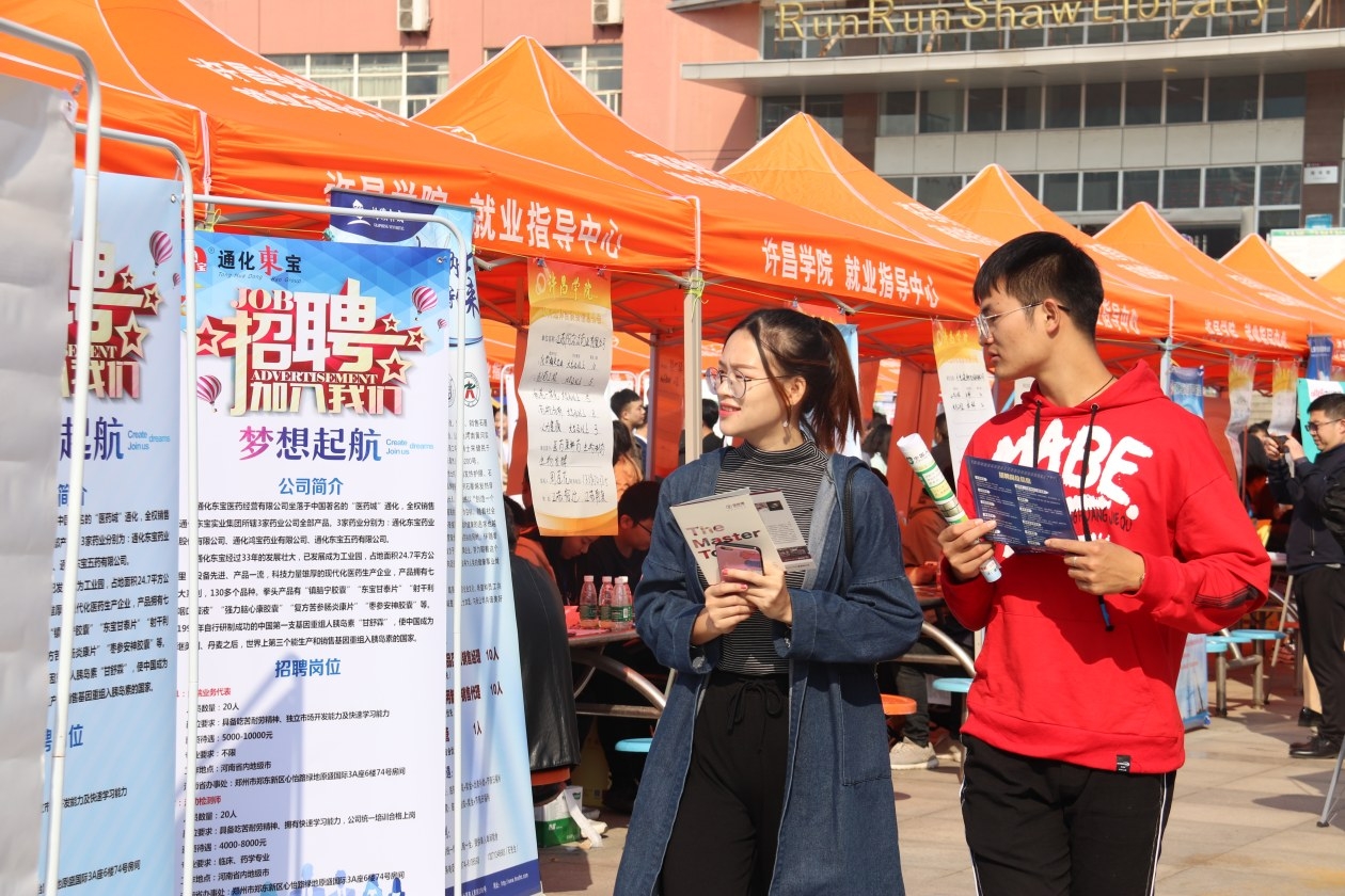 新闻回放:2019年11月1日,我市2019年秋季大学生招聘会在许昌学院举行。此次招聘会由市人社局、许昌学院联合举办,吸引省内外380家名优企业前来招兵买马。当日,招聘企业共提供就业岗位近万个,进场求职的大学生等求职者逾8000人,现场达成就业意向3100人次。