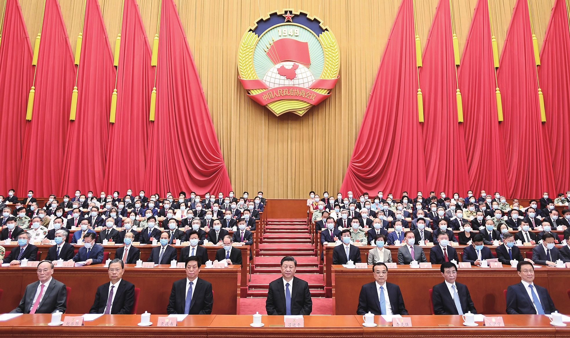 习近平、李克强、栗战书、王沪宁、赵乐际、韩正、王岐山等在主席台就座。