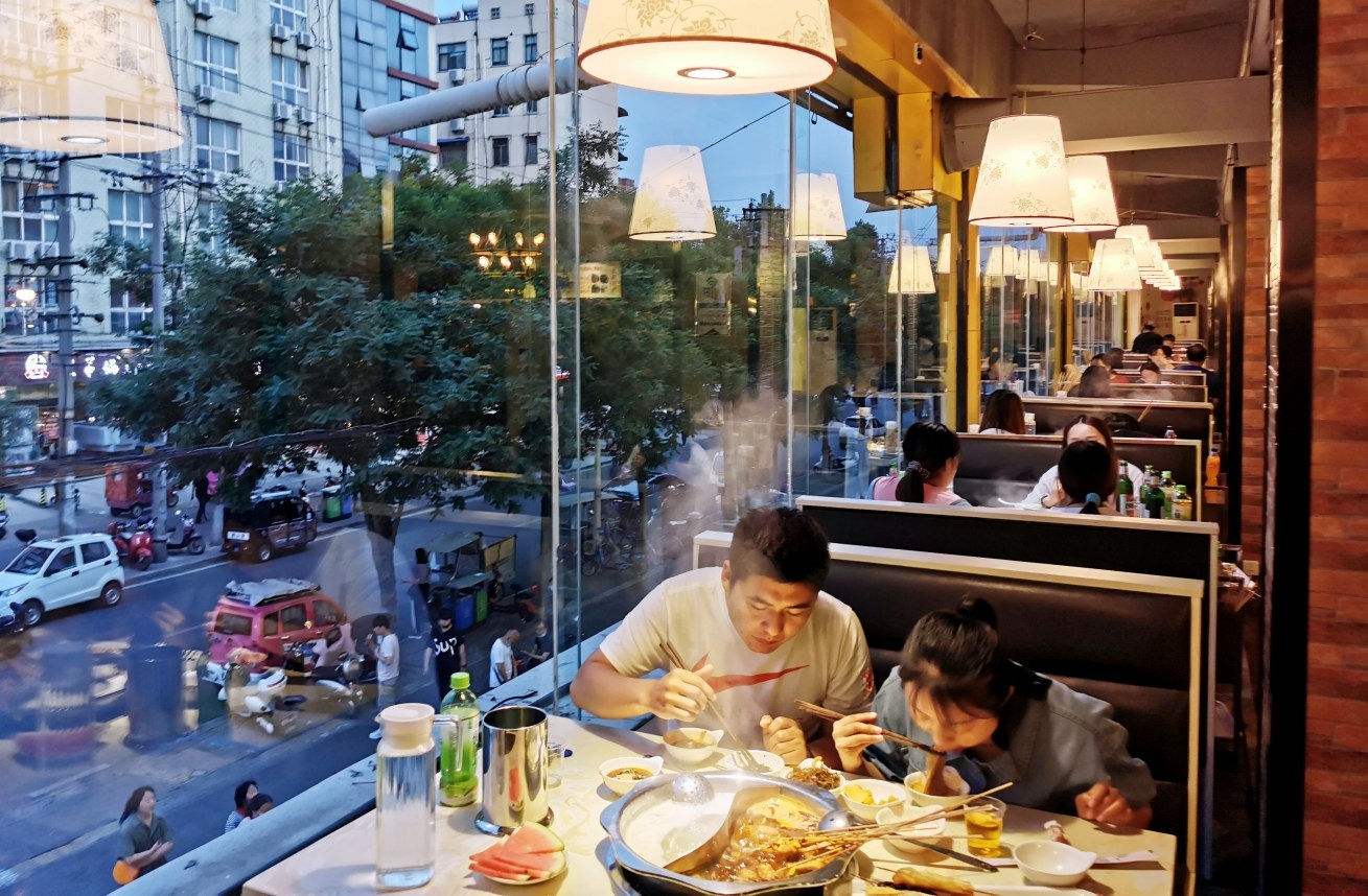 食客在市区一火锅店大快朵颐。 本报记者 乔利峰 摄