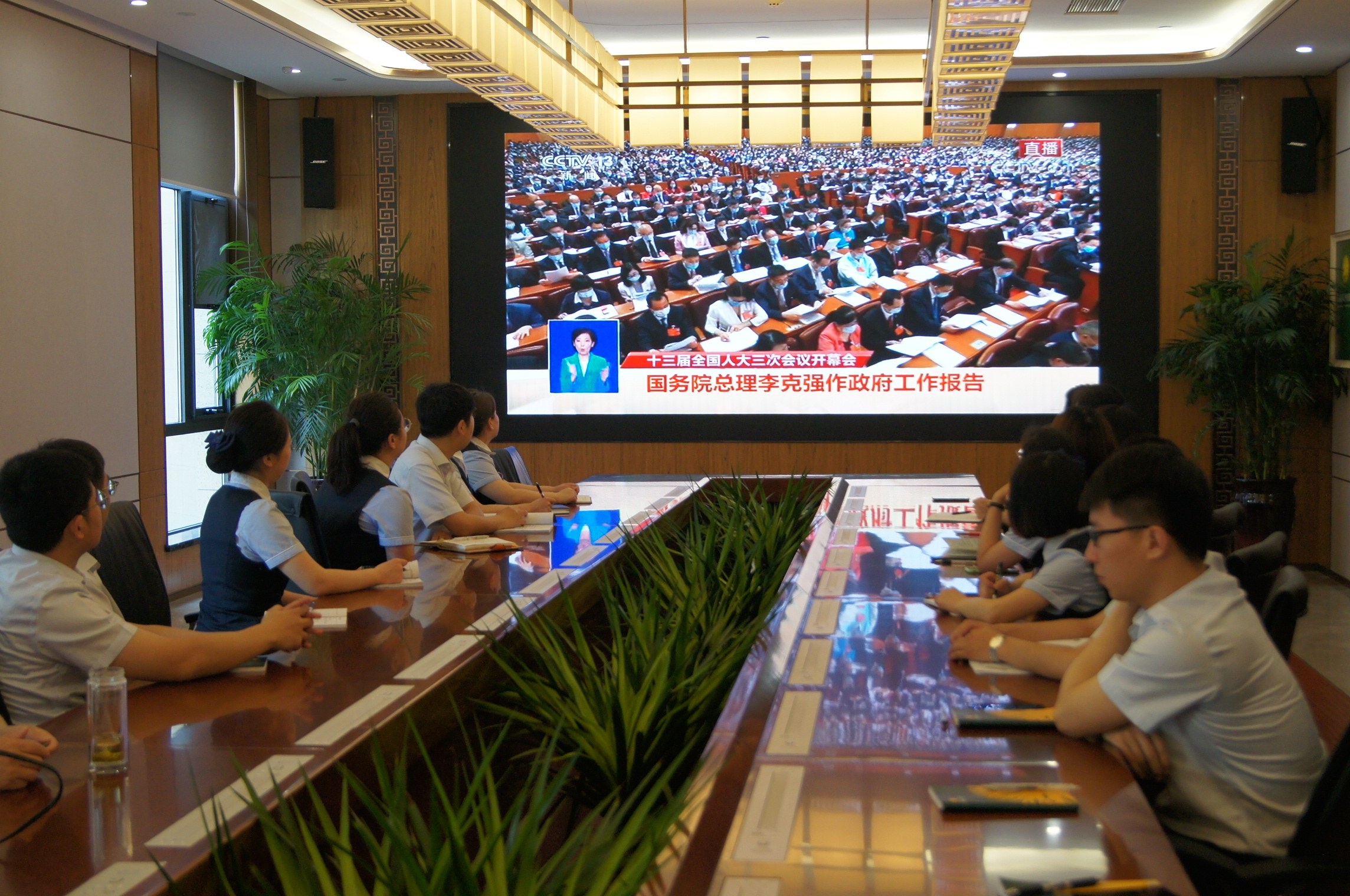 五月二十二日,长葛轩辕村镇银行组织全体员工收看了全国两会直播,认真聆听了李克强总理所作的政府工作报告。 张三丰 摄