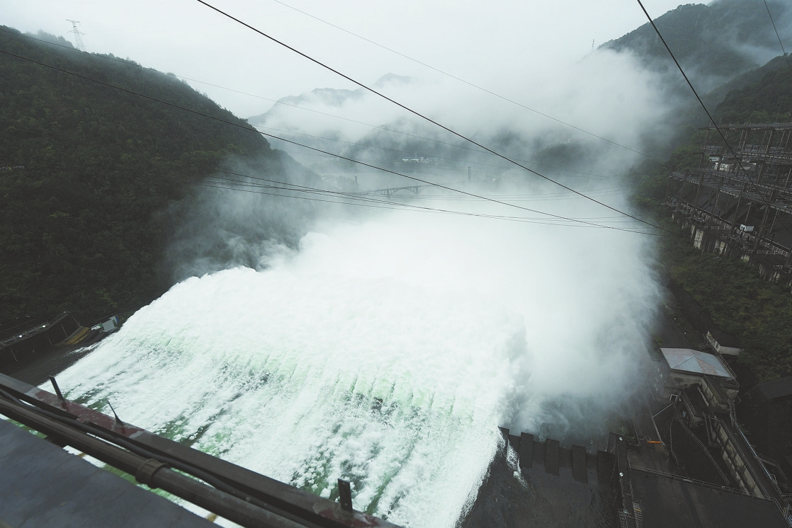 7月7日拍摄的新安江水库开闸泄洪场景。 当日,浙江新安江水库开闸泄洪,这是水库61年历史中的第7次泄洪。自5月29日入梅以来,新安江流域连续遭遇七轮强降雨,截至7月7日10时开闸泄洪前,水库水位107.24米,超汛限水位0.74米。新安江水库是华东地区最大的水库,在钱塘江流域的防洪度汛中起到关键作用。 新华社记者 翁忻旸 摄