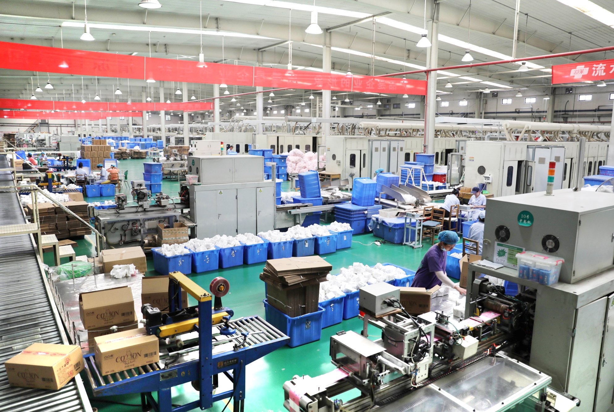 8月5日,位于襄城县产业集聚区的舒莱卫生用品有限公司,员工正在生产线上忙碌。该公司加强技术创新应用,对原有妇女卫生用品生产线上的包装、输送、入库、码垛等环节进行技术改造,提升了流水线作业智能化水平。 本报记者 乔利峰 摄