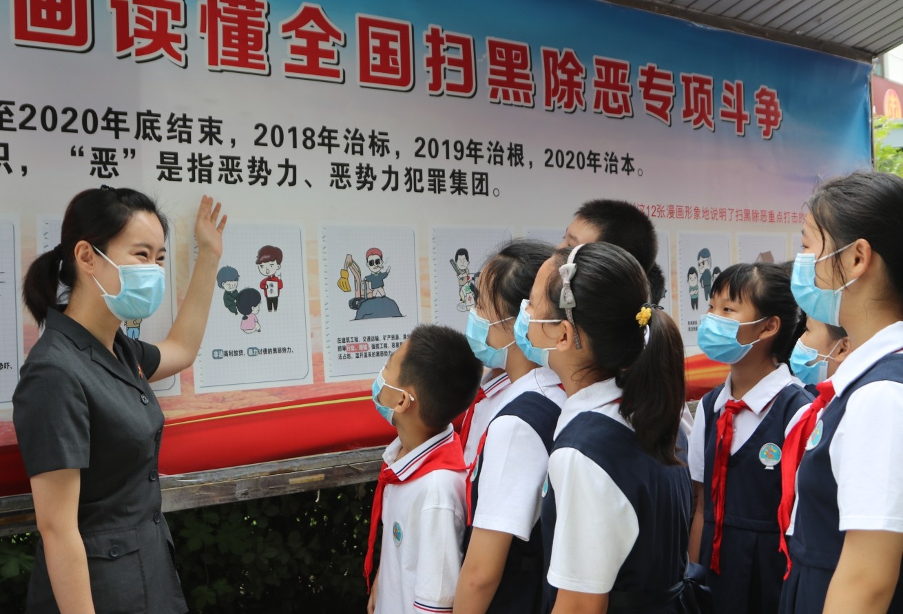 近日,魏都区人民法院举办法院开放日活动,辖区内两所学校近百名师生应邀来到该法院,通过一幅幅生动形象的漫画,了解什么是黑、什么是恶,以及如何运用法律武器面对黑恶势力,维护自己的正当权益。 张棣 摄