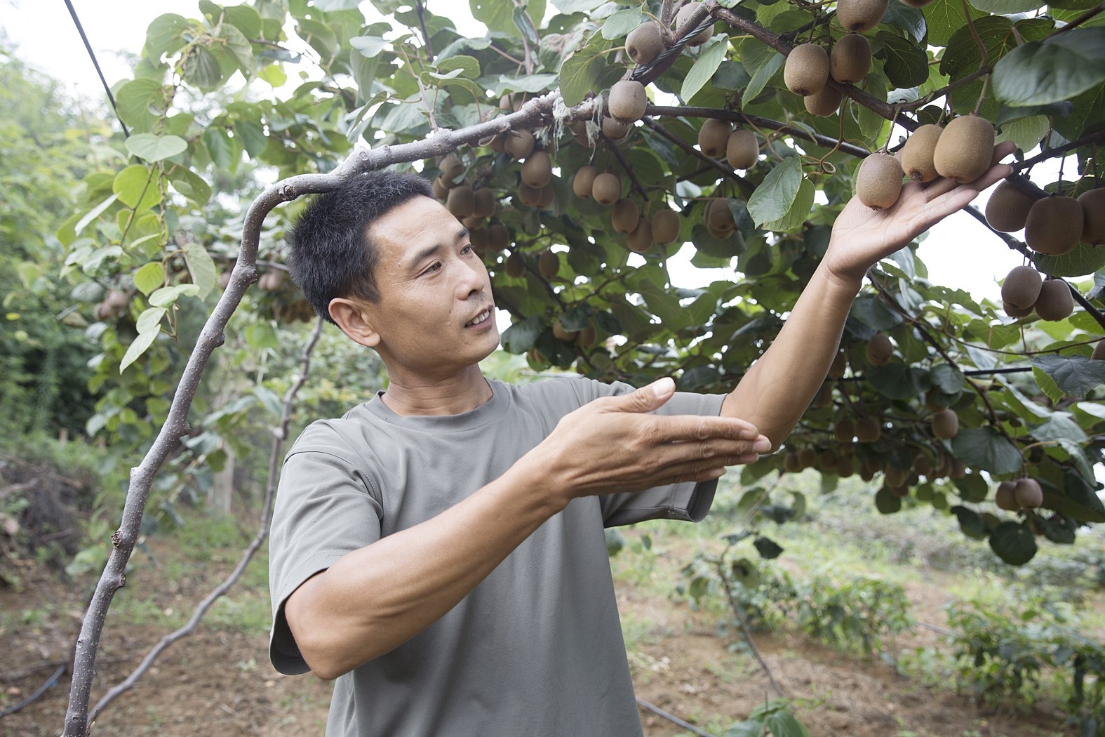 走进“百果园”,起伏的山坡,林木葱郁,硕果飘香。 “从五月开始,一直到冬天,我这里一直都有应季水果可供游客采摘……现在已经立秋了,猕猴桃就快上市了!”8月11日,谈及自己经营的“百果园”,这位家庭农场主如是说。