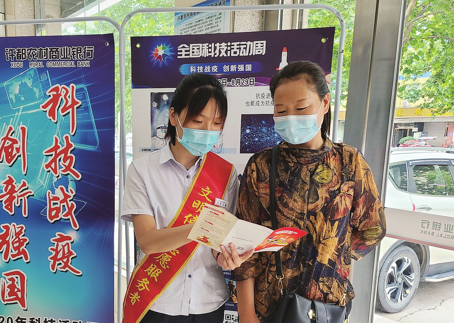 近日,许都农商银行积极开展以“科技战疫,创新强国”为主题的科技活动周宣传活动,向客户重点介绍了人工智能、生物识别等新型技术在金融领域的推广应用,并引导社会公众在线上办理业务,提升服务质效,为助力地方经济发展和企业复工达产贡献力量。 尚军辉 摄