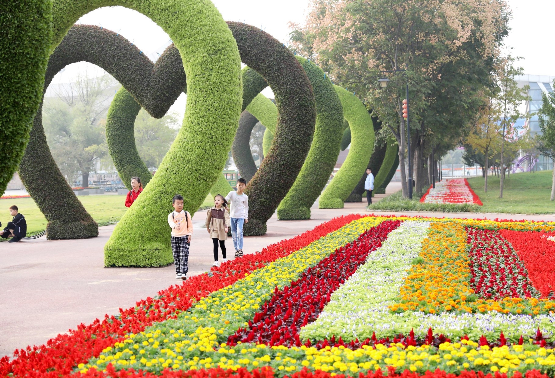 十月十日,孩子们在鄢陵中原花博园赏花游玩,感受秋季的绚丽多彩。 本报记者 乔利峰 摄