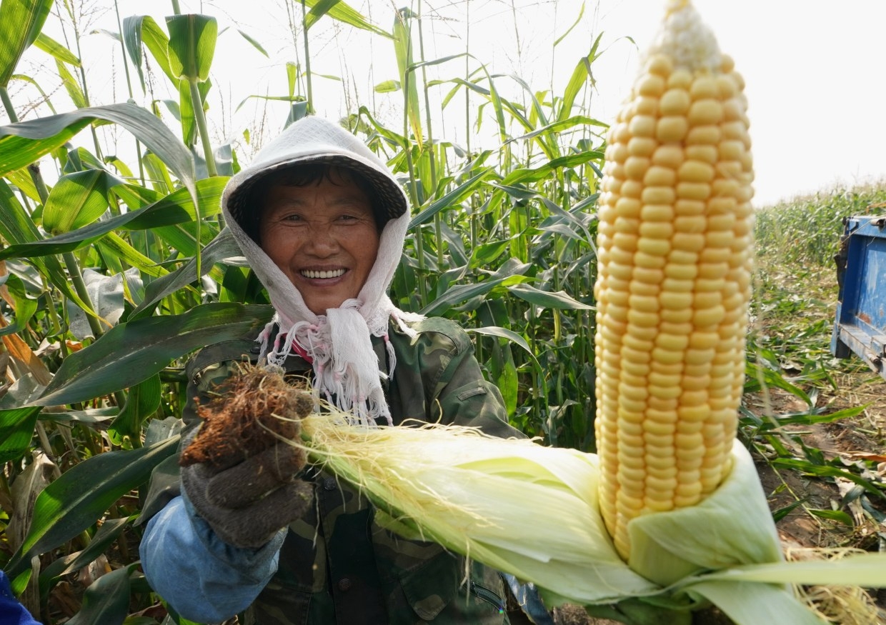 10月12日,唐山市曹妃甸区第八农场的一名农民展示收获的甜玉米。近年来,河北省唐山市曹妃甸区以农业增效、农民增收为目标,引导农场调整种植结构,通过“公司+基地+农户”的经营模式,发展订单式甜玉米种植,取得良好效果。 新华社记者 杨世尧 摄
