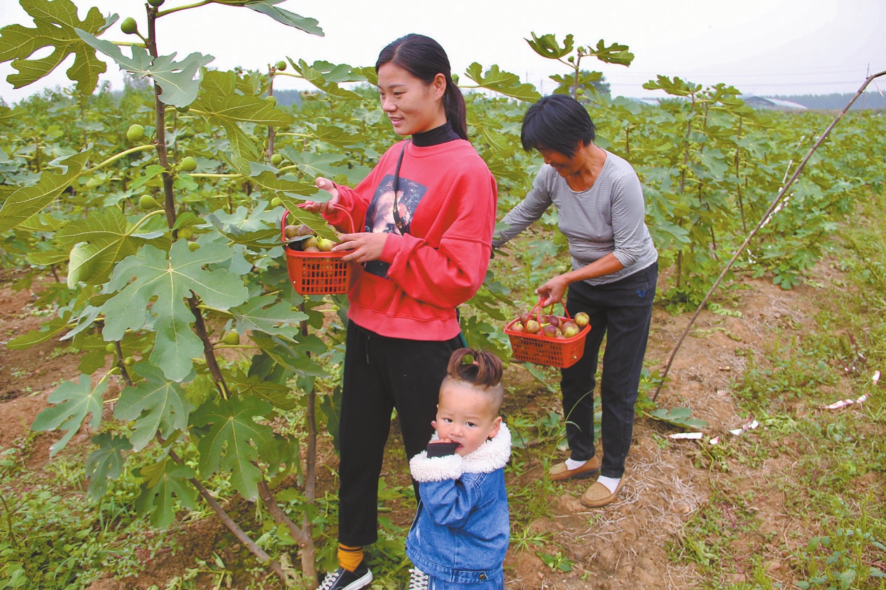 近日,游客在位于首山脚下的襄城县山头店镇姚庄村村民耿晓辉的百亩果园内采摘无花果。近年来,襄城县山头店镇以党建引领脱贫攻坚,鼓励农民上山种植无花果、桑葚、樱桃等,使万亩荒山披上了绿装,引来周边游客前来采摘旅游,助力当地农民增产增收、脱贫致富。 本报记者 史晶 通讯员 古国凡 摄