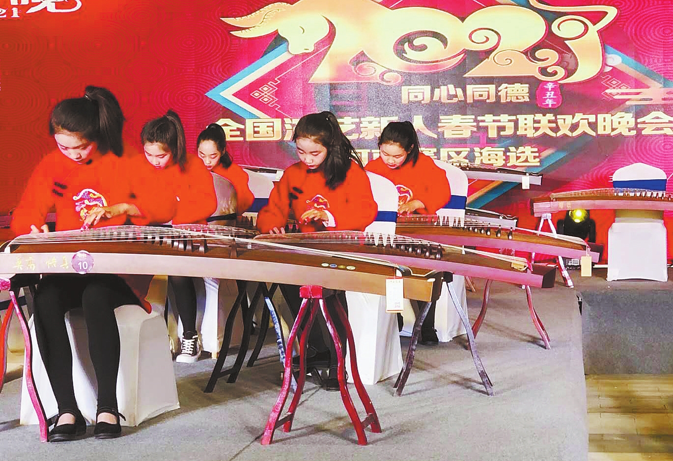 近日,我市悟真国乐的古筝学员在同心同德全国演艺新人春节联欢晚会河南赛区海选中脱颖而出,成功入选。据悉,悟真国乐选送的古筝演奏节目是我市唯一入选的文艺节目。图为我市小学员正在海选现场演奏古筝。寇旭静 摄