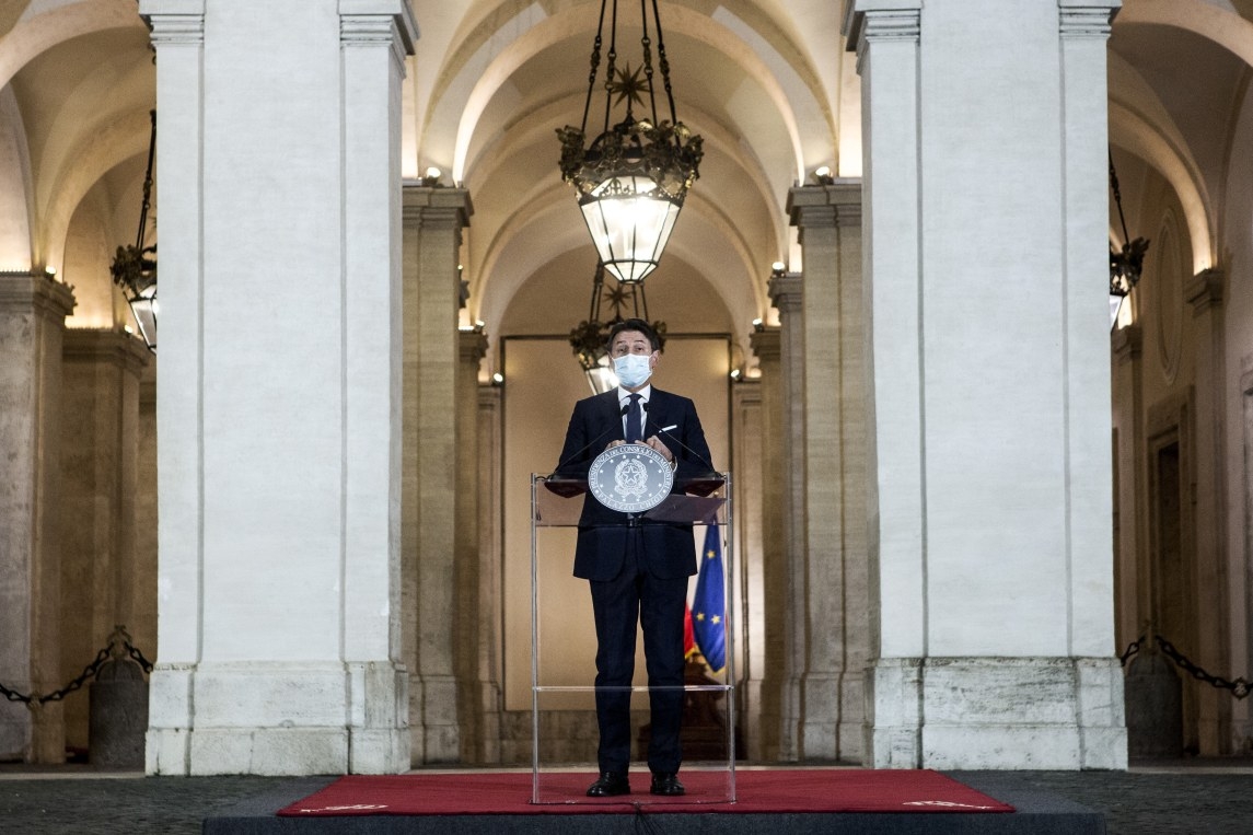 意大利日增病例逾万 10月18日,意大利总理孔特在罗马举行的新闻发布会上宣布防疫新举措。意大利新冠疫情近期快速反弹,18日报告新增确诊病例11705例。总理孔特当天宣布防疫新举措,包括允许各地自行出台宵禁措施、减少商业店铺营业时间等。 新华社发