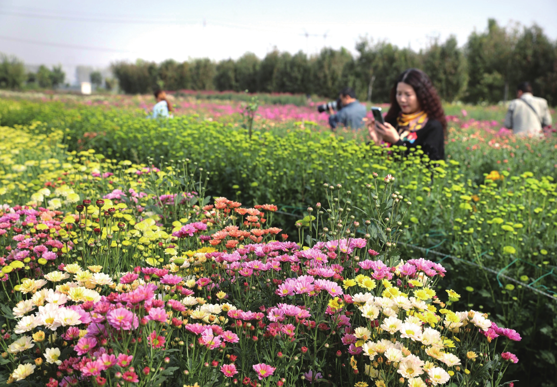 10月25日,位于建安区的华育花卉有限公司雏菊苗圃基地,盛开的多头彩菊吸引游客前来拍照游玩。该公司建设的“花舞小镇”苗圃基地,以采摘、赏花、休闲娱乐于一体,通过科学培育与管理,形成四季花开、百花争艳的生态景象。 本报记者 乔利峰 摄
