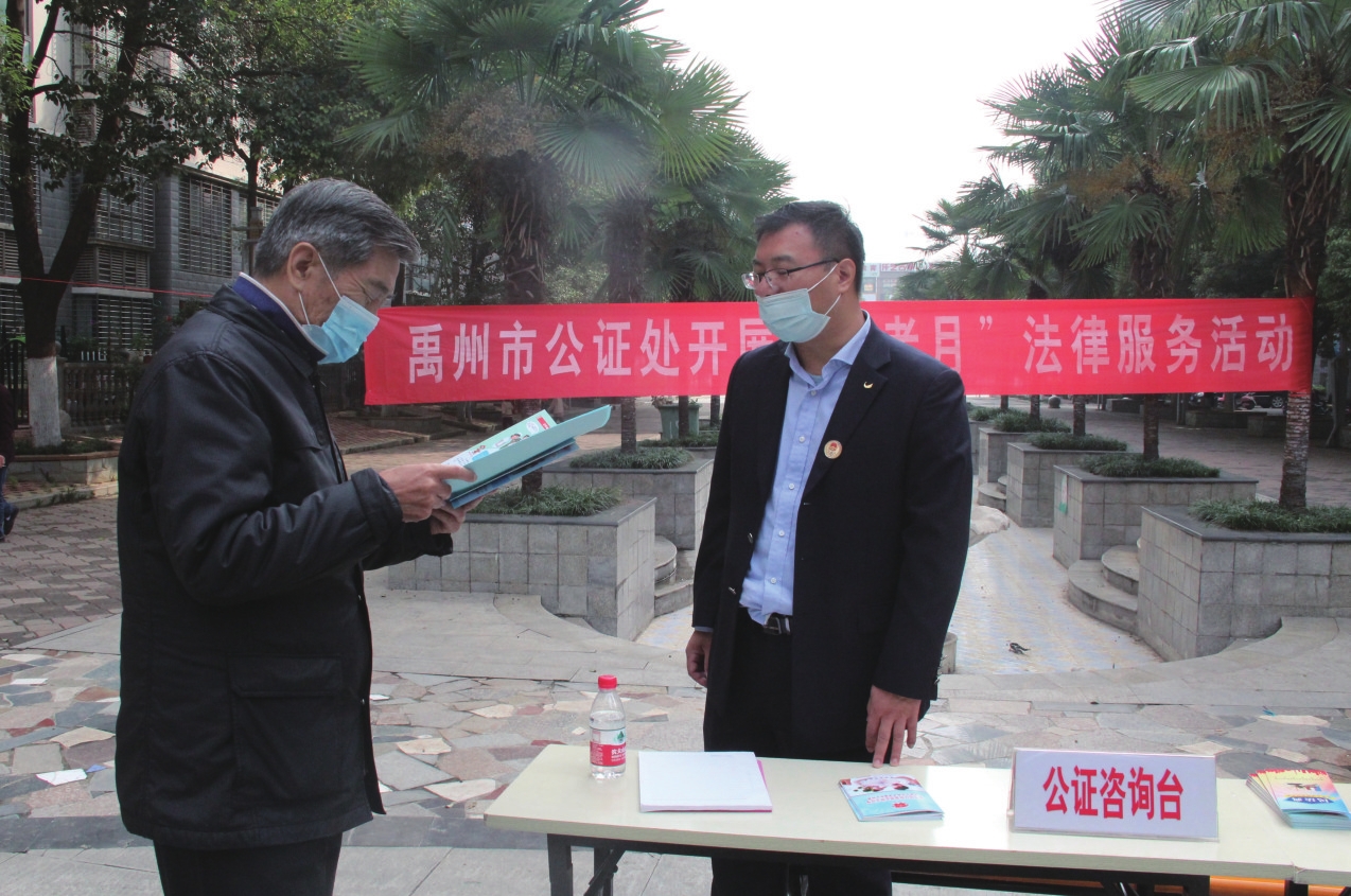 连日来,禹州市司法局组织工作人员先后来到该市多个社区开展“公证敬老月”法律服务活动,为老年人提供公证法律咨询、免费办理遗嘱公证等。图为10月26日该局工作人员现场接待群众咨询时的情景。 张昆仑 摄