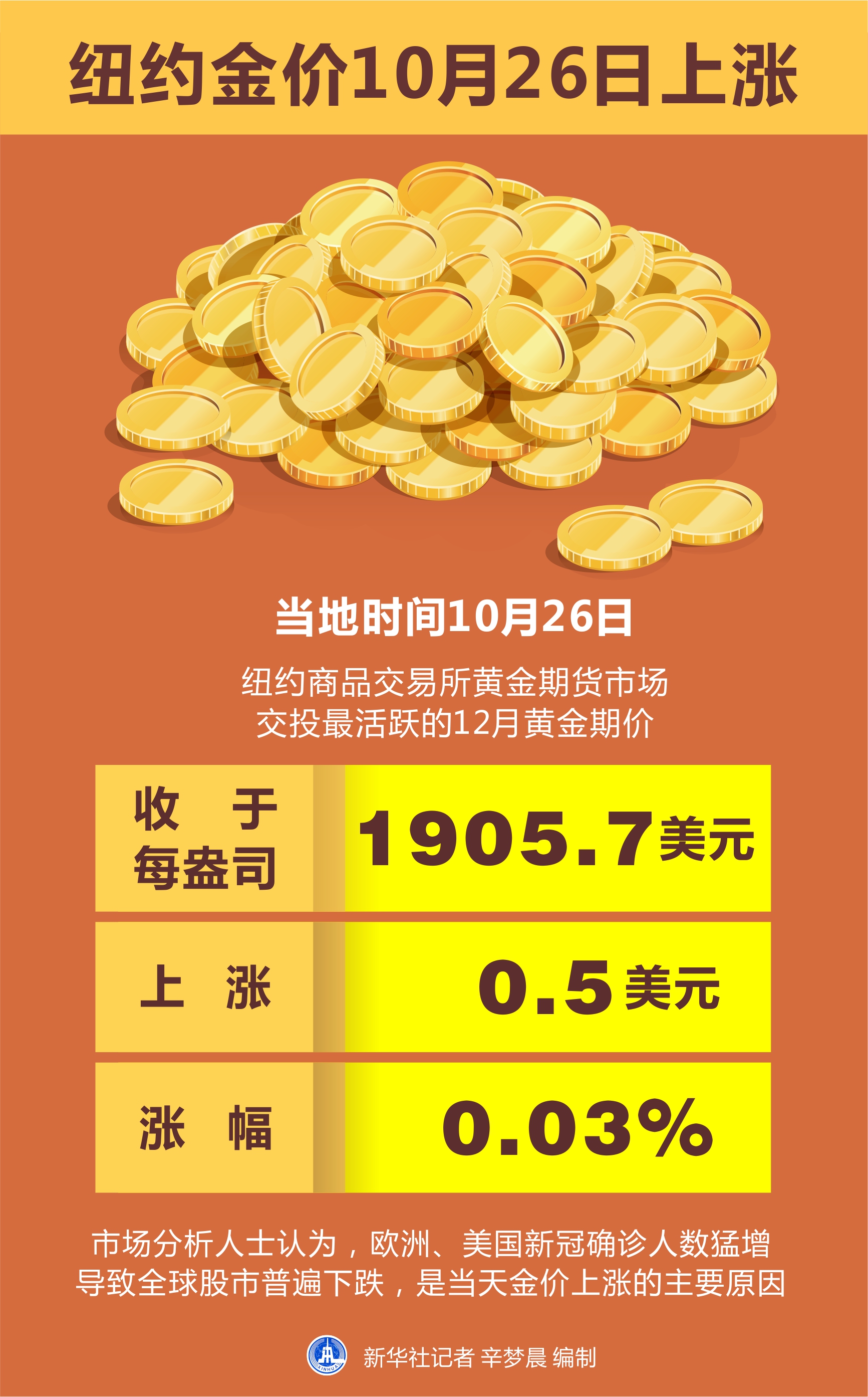 纽约金价十月二十六日上涨
