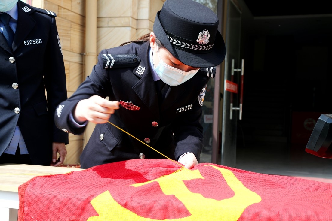 今年是中国共产党成立100周年。长葛市公安局采用这种方式,把政法队伍教育整顿和党史学习教育结合起来,引导广大民警弘扬革命精神、传承红色基因。在社区老师的指点下,民警你一针、我一线,把对祖国和党的热爱融在了密密的针脚里。