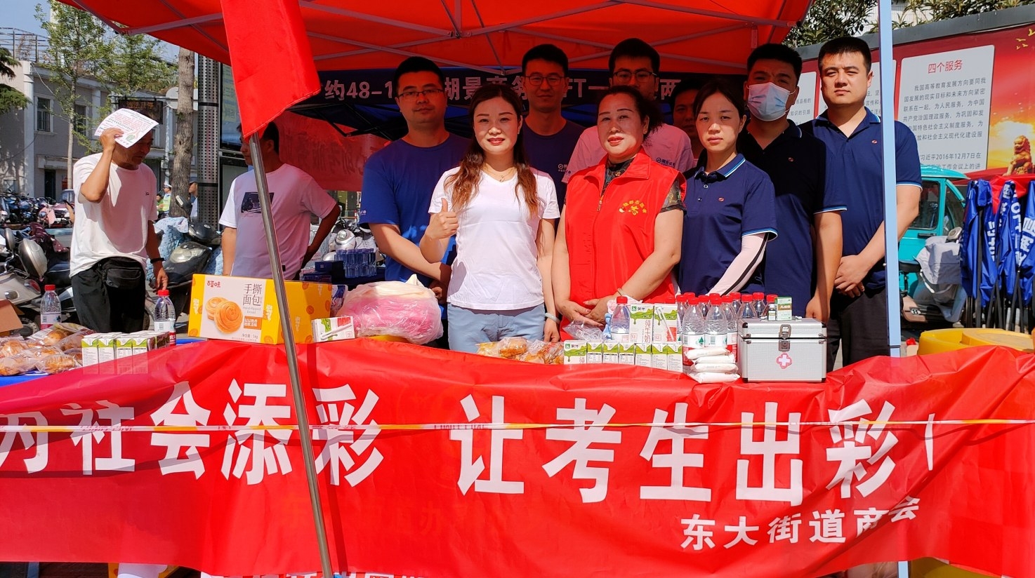 6月7日,魏都区东大街道商会积极弘扬志愿精神,在高考考点附近设立服务点,为许昌广大考生及家长奉献爱心,以实际行动为文明城市增光添彩。 许廷合 摄