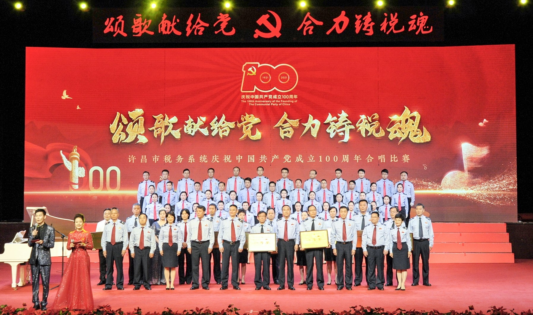 唱响红歌颂党恩,汲取力量再奋进。为庆祝中国共产党成立100周年,扎实推动党史学习教育深入开展,日前,全市税务系统“颂歌献给党 合力铸税魂”——庆祝中国共产党成立100周年合唱比赛在许都大剧院举行。《我宣誓》《十送红军映山红》《唱支山歌给党听》《保卫黄河》……一曲曲经典颂歌铿锵有力、催人奋进。比赛现场,来自全市税务系统的12支代表队深情演唱,以高昂嘹亮的歌声回顾党的光辉历程,讴歌党的伟大成就,表达对建党100周年的诚挚祝福,凝聚为民服务、干事创业的奋斗合力。 李晓 摄