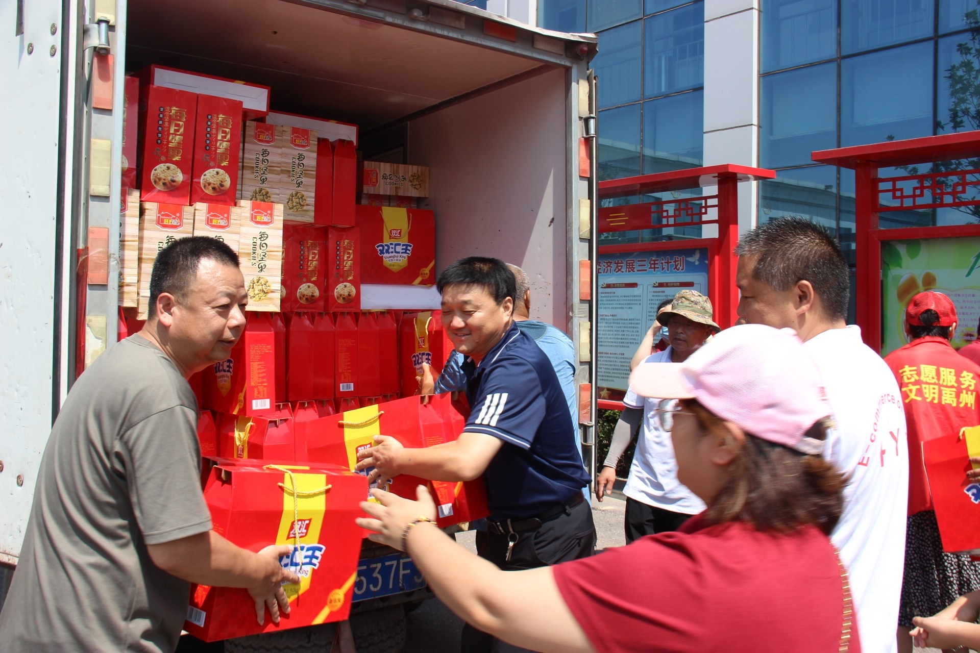 7月23日下午,经过爱心企业的紧张筹备,市政府食安办组织12辆车、20多个人,运送价值20余万元、救灾一线急需的方便面、纯净水、榨菜、毛巾、汗衫、袜子、牙膏、牙刷等物资,前往长葛市大周镇、南席镇进行慰问。