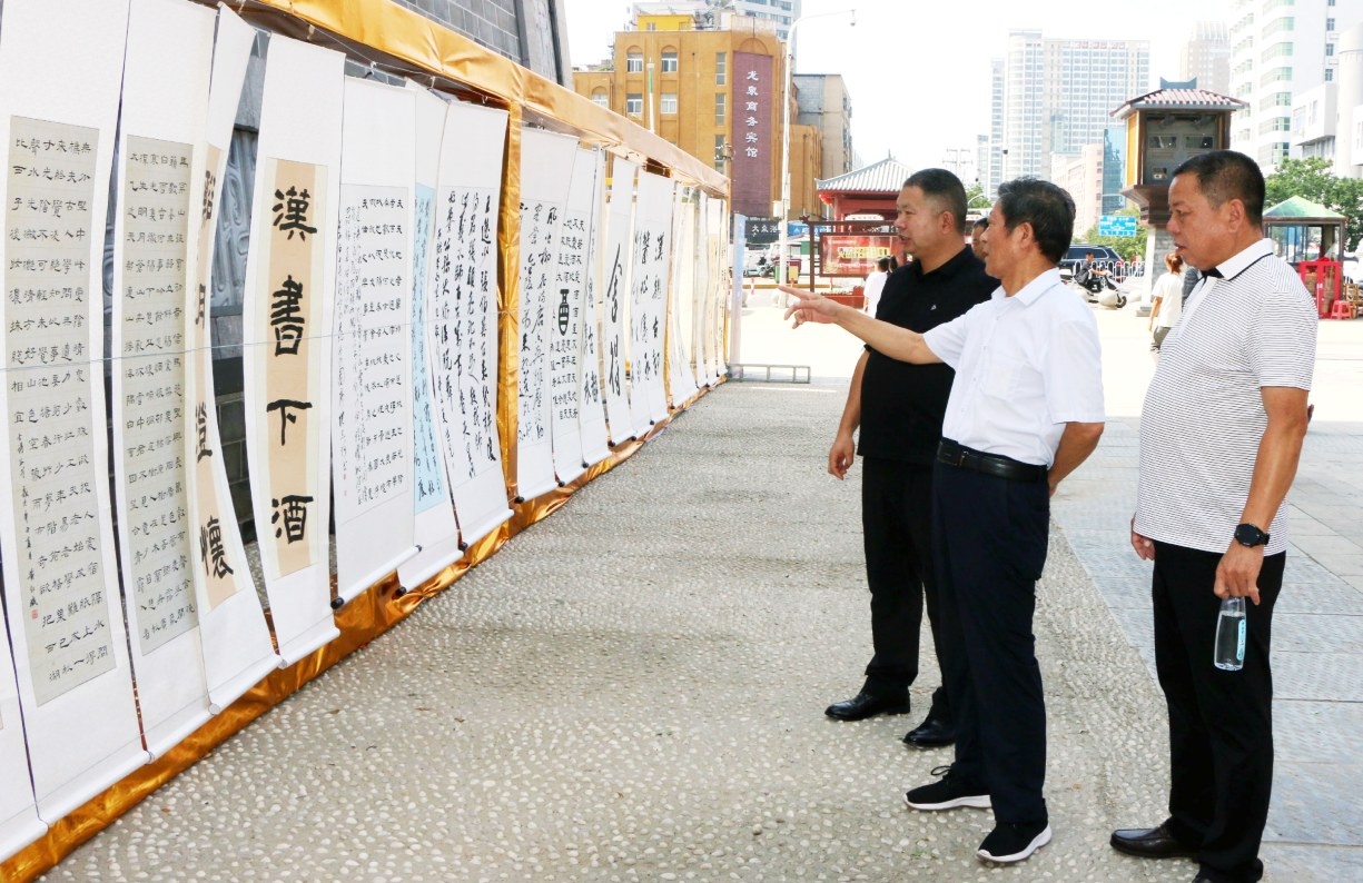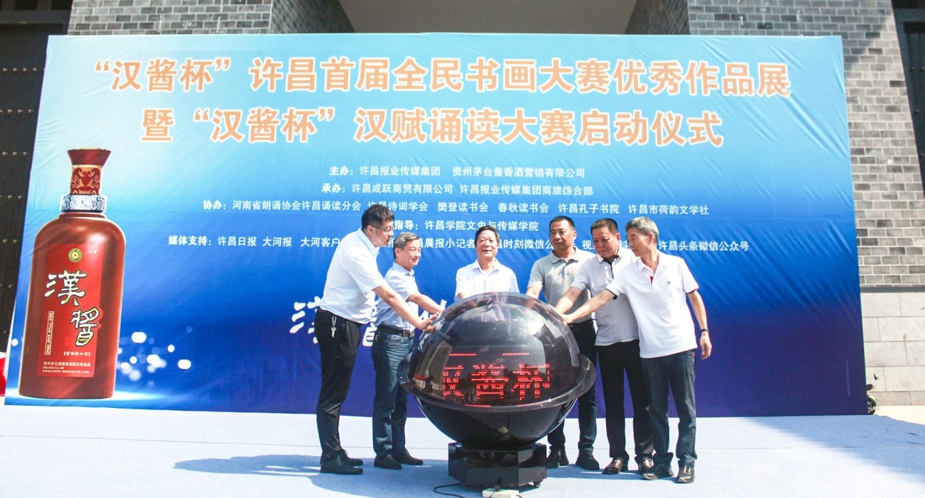 本报讯 (记者 任萌 文/图) 7月29日上午,由许昌报业传媒集团、贵州茅台酱香酒营销有限公司主办,许昌成跃商贸有限公司、许昌报业传媒集团商旅综合部承办的“汉酱杯”许昌首届全民书画大赛作品展暨汉赋诵读大赛启动仪式在市区曹魏古城南城门盛大举行。