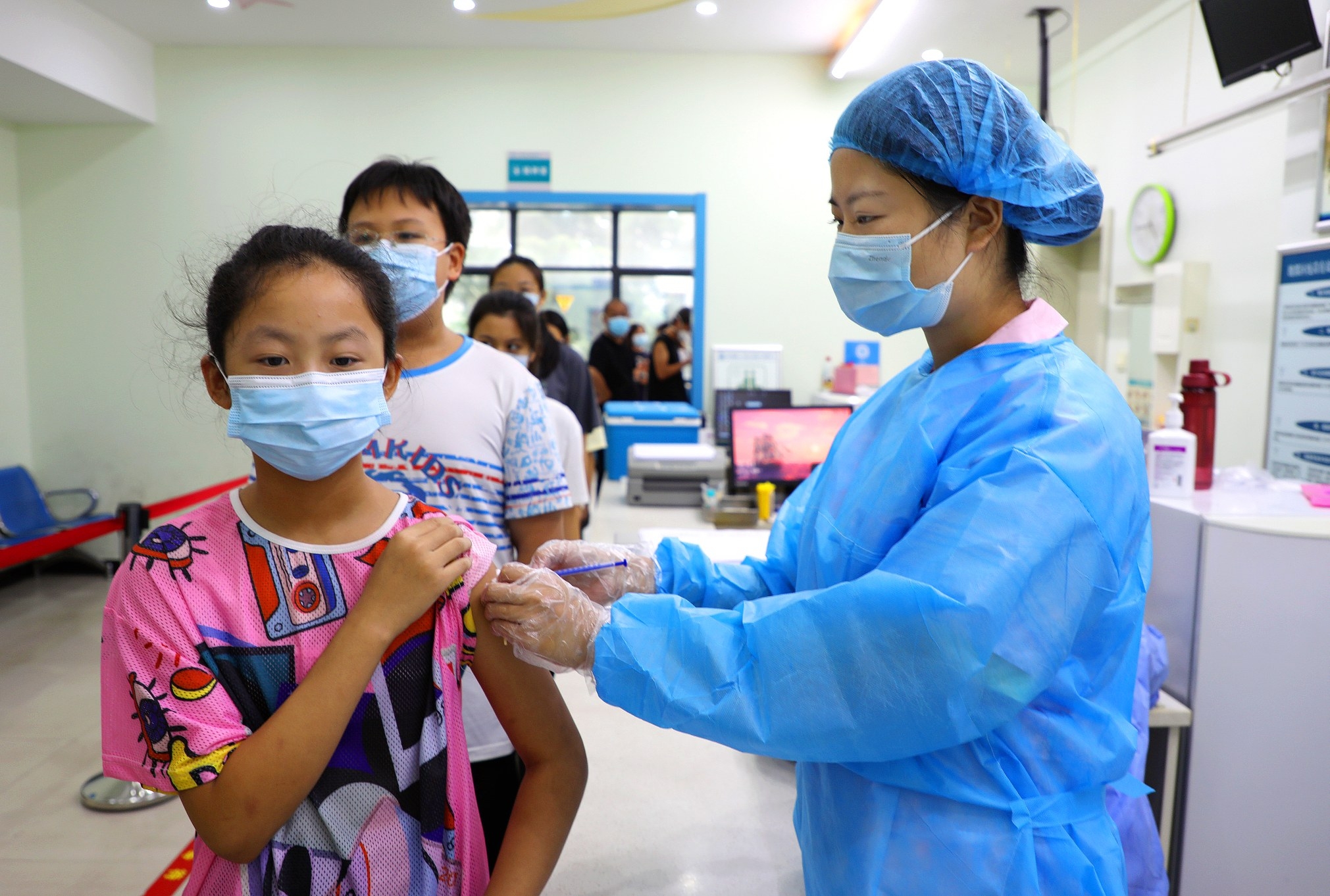 8月16日,五一路社区卫生服务中心医务人员正在给12周岁以上学生注射新冠病毒疫苗。据悉,我市自8月15日起恢复对12周岁至17周岁年龄段学生进行新冠病毒疫苗接种工作,在8月25日前完成第一剂接种任务、9月15日前完成第二剂接种任务。 本报记者 谭宜姝 摄