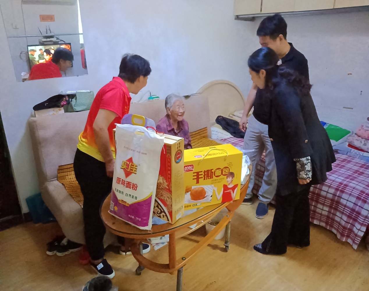 为大力弘扬中华民族优秀传统文化,营造文明和谐、幸福美满的节日氛围,9月18日,魏都区许烟社区党总支与“红色治理”试点小区党支部,一起到辖区特殊家庭、高龄老人家进行走访慰问,为他们送上祝福与关爱。图为当日工作人员看望辖区高龄老人。 许廷合 摄
