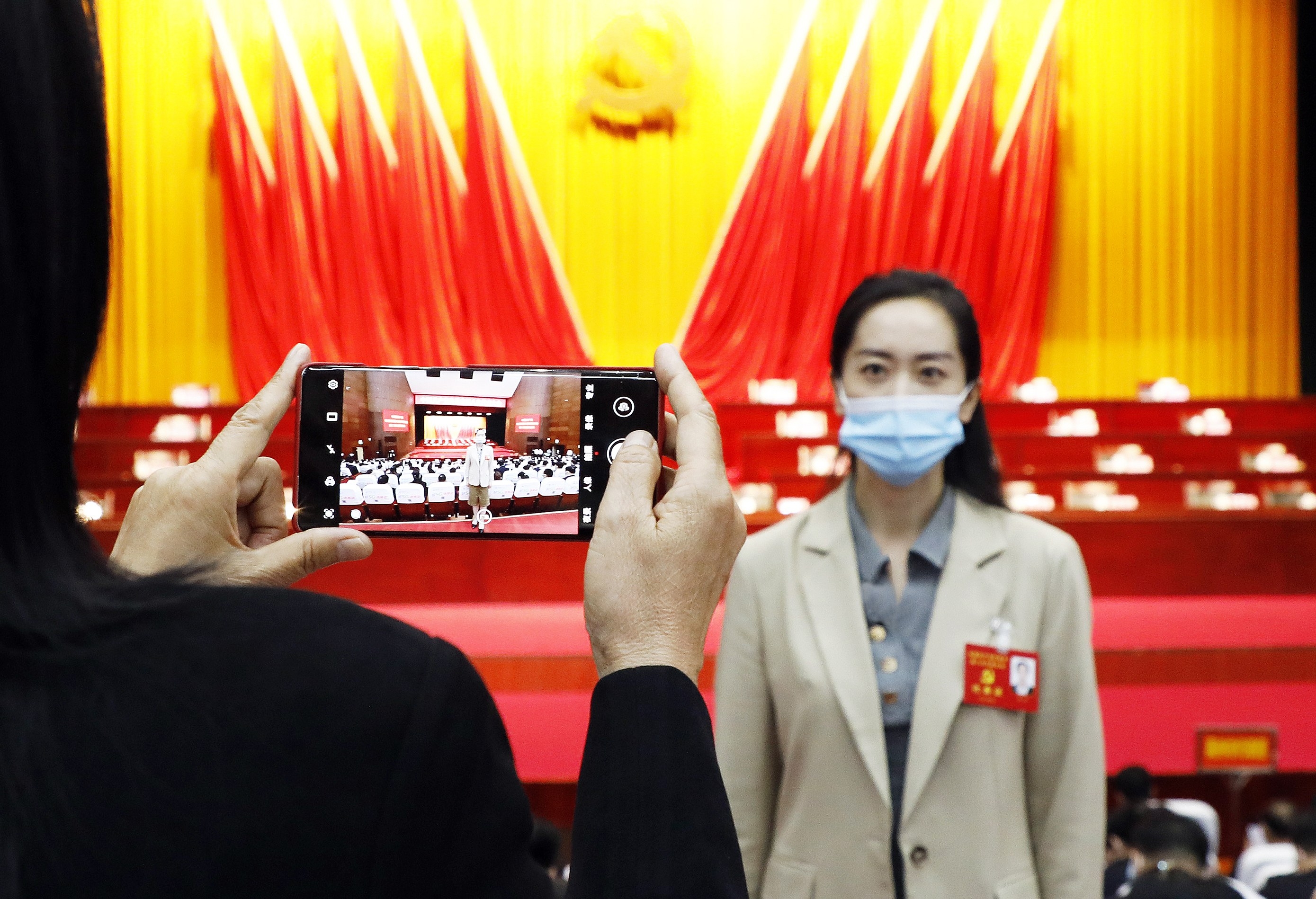 9月27日,出席市八次党代会的代表在会场内拍照留念。 本报记者 谭宜姝 摄