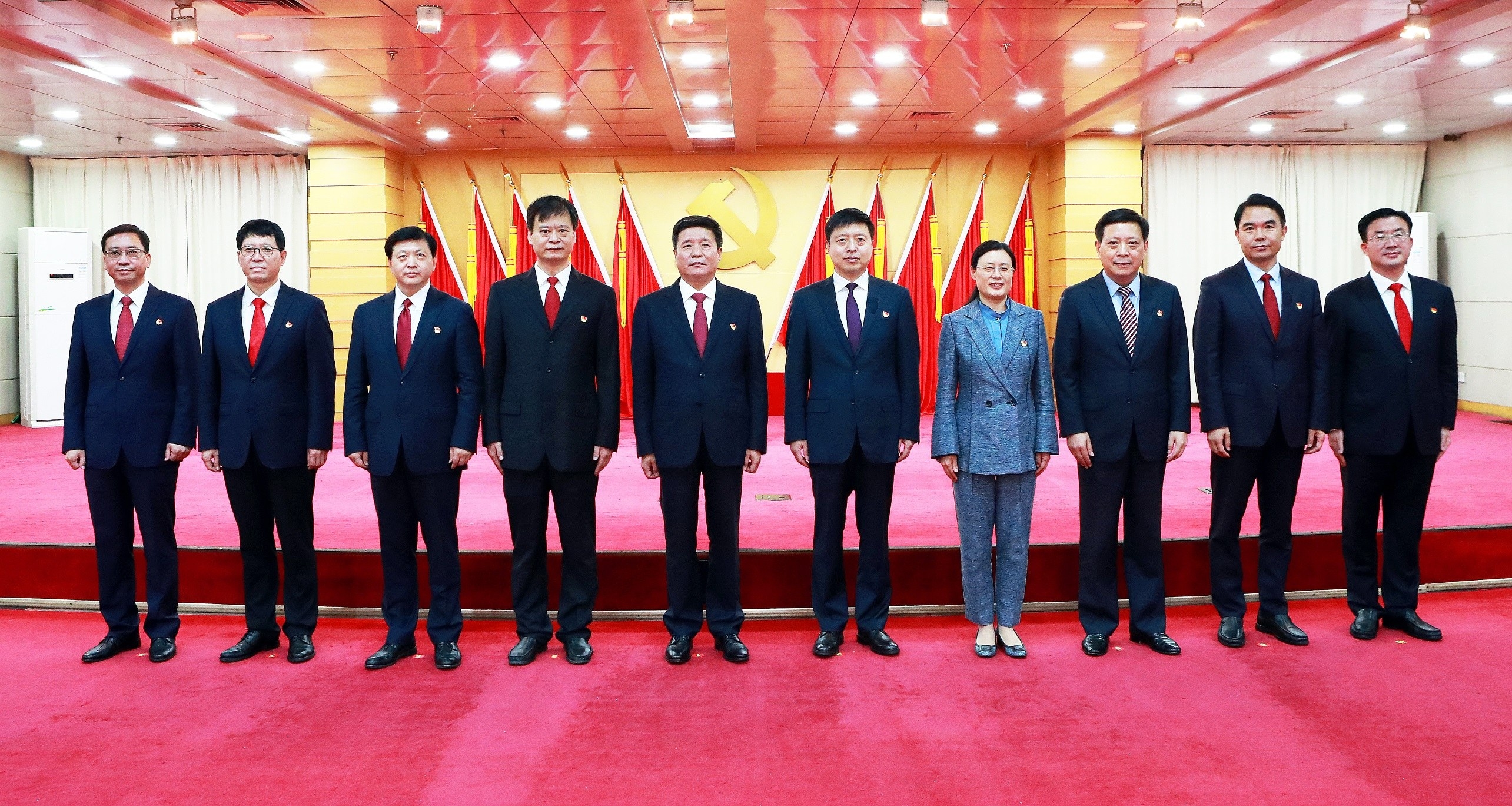 新当选的中共许昌市第八届委员会常务委员会委员史根治(左五 )、刘涛(右五)、马正兰(左四)、方婷(右四)、黄旭东(左三)、王志宏(右三)、王自合(左二)、张庆一(右二)、李海峰(左一)、卢希望(右一)。 本报记者 牛书培 摄
