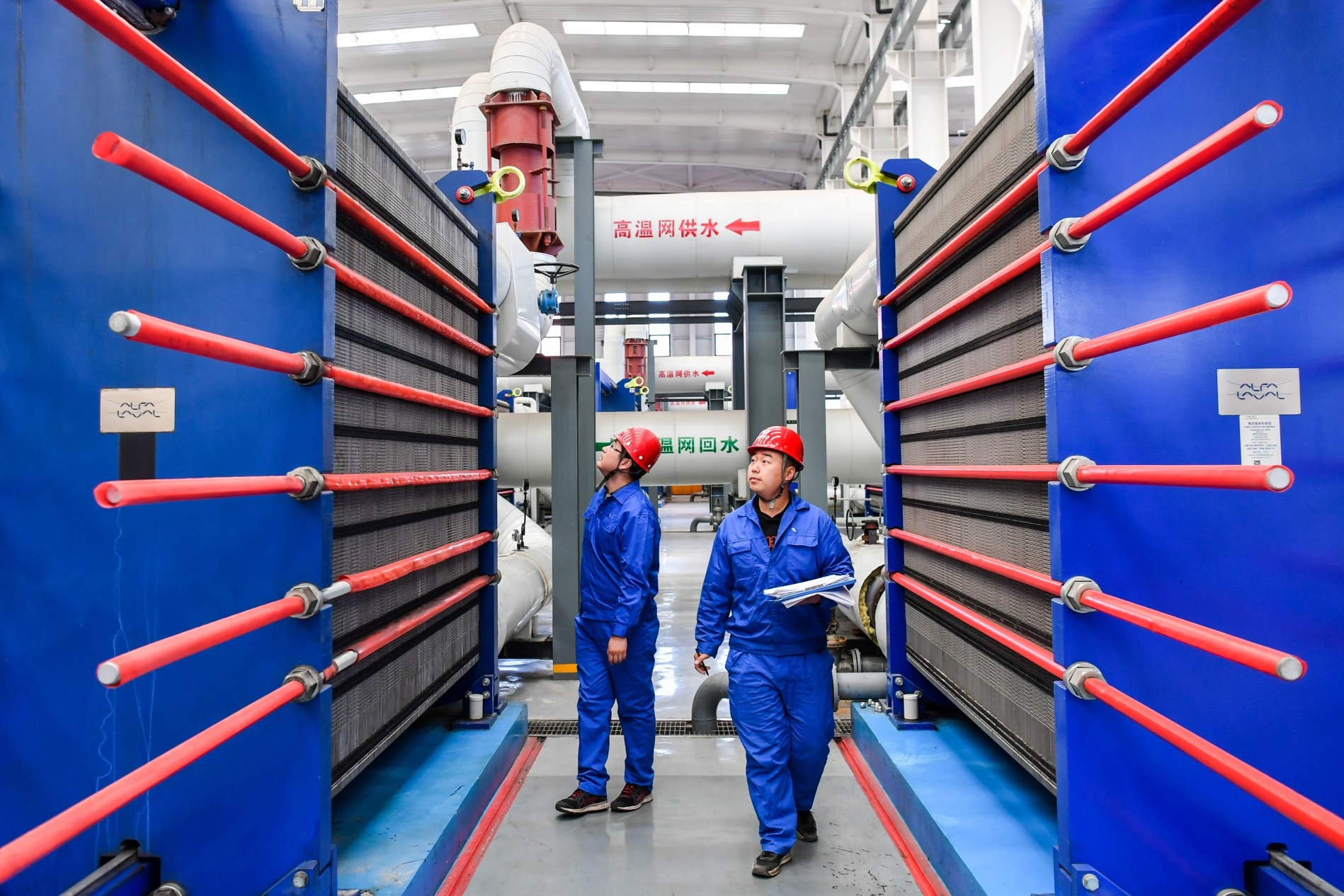 11月4日,太原热力集团太古供热分公司中继能源站工作人员在巡检。 近日,太原热力集团加大对供热设施的巡检力度,确保1839座热力站正常运行,保障太原市民温暖过冬。 新华社记者 曹阳 摄