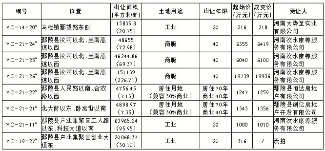 鄢陵县2021年第十一批国有建设用地 使用权拍卖出让成交结果公示