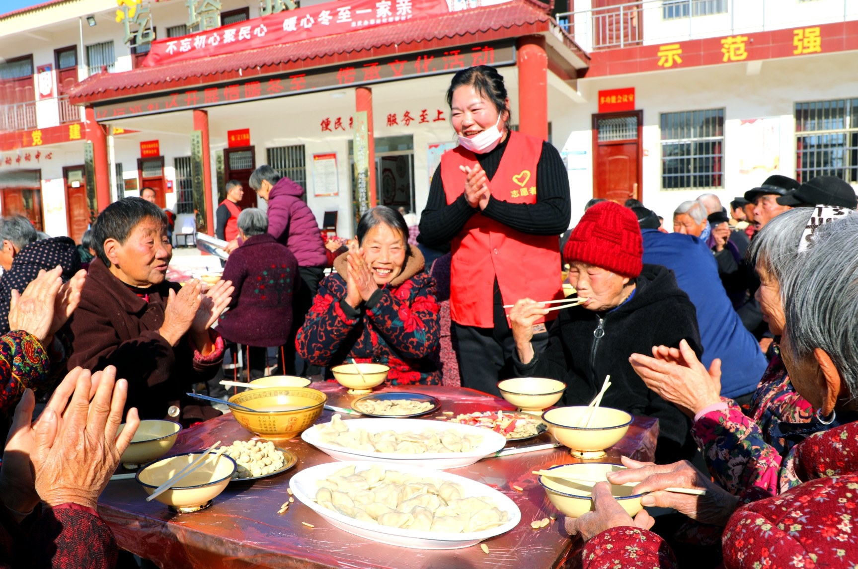 12月21日,许昌市城乡一体化示范区忠武街道圪塔张社区主办的“情暖冬至百叟宴”活动在圪塔张社区举行,近百名老人汇聚一堂,在美味飘香的饺子宴上收获浓浓的关爱和满满的祝福。 本报记者 谭宜姝 摄
