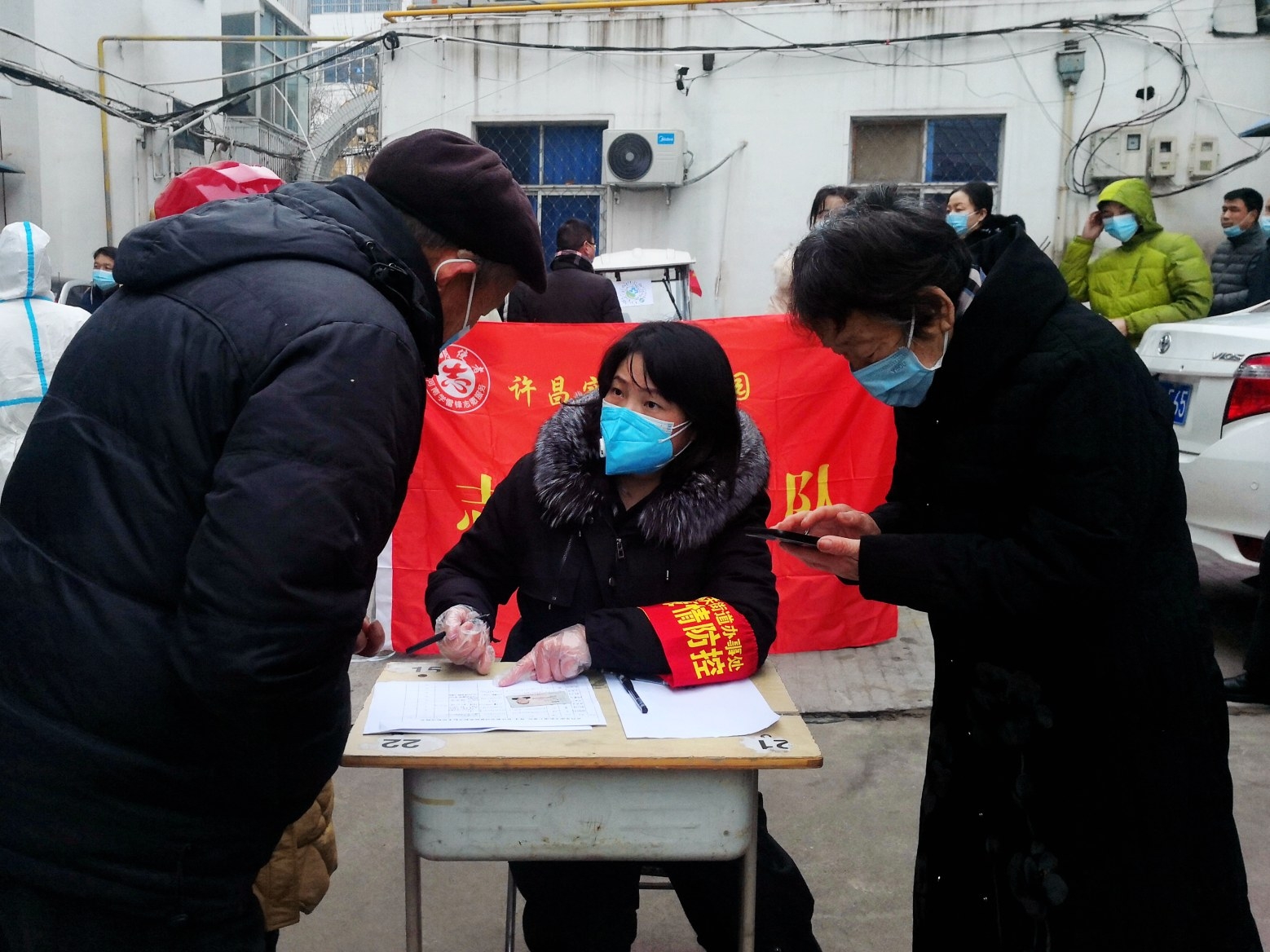 近日,许昌实验幼儿园党员志愿者来到魏都区南关街道办事处育才社区,开展疫情防控志愿服务活动。志愿者们帮助医务人员和社区工作者维护核酸检测现场秩序、帮助老人使用手机小程序登记等,助力我市抗疫工作。张丽君 摄