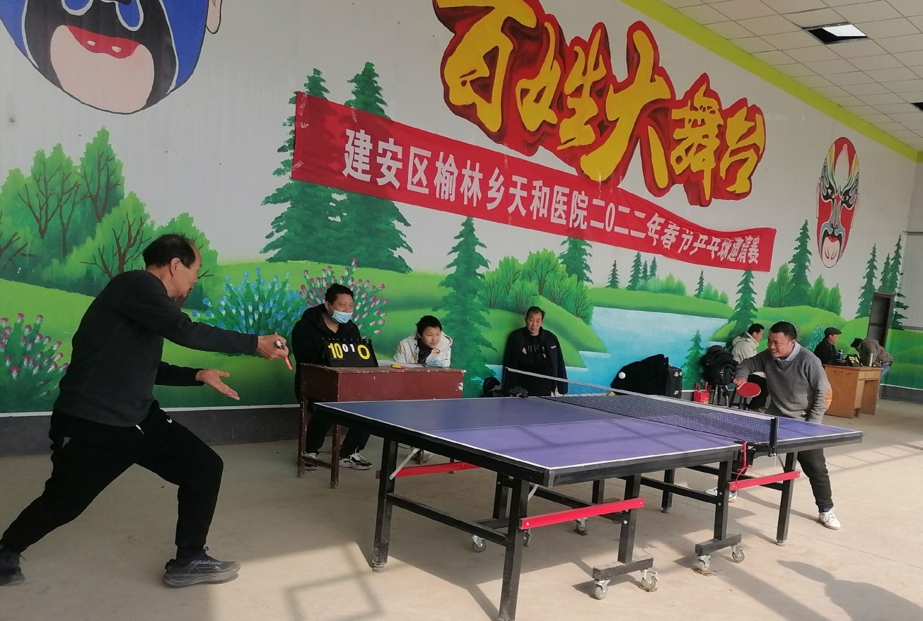 2月8日下午,在建安区榆林乡文化广场,两名乒乓球选手正在激烈角逐。为了推进乡风文明,养成良好的过节习惯,该乡举办了虎年乒乓球邀请赛,全乡30位选手参加比赛。 朱新正 摄