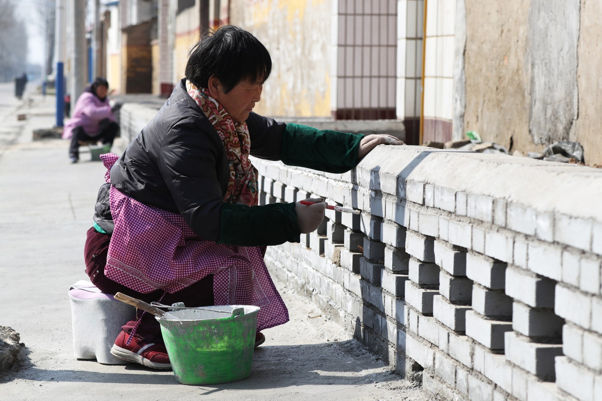2月27日,建安区陈曹乡袁庄村村民在粉刷街道新建围墙。“村组卫生好了,群众的健康才能有保障。大家身体健康了,才有精力搞发展。”近年来,建安区聚焦农村人居环境整治难点,坚持“街道主管、村组主建、多方参与”,做好组织建设、示范推动、文化引领,统筹推进农村人居环境提升改造,做到建设前群众赞成、建设中群众参与、建成后群众满意、运行中管理规范,不断改善农村人居环境。 本报记者 牛书培 摄