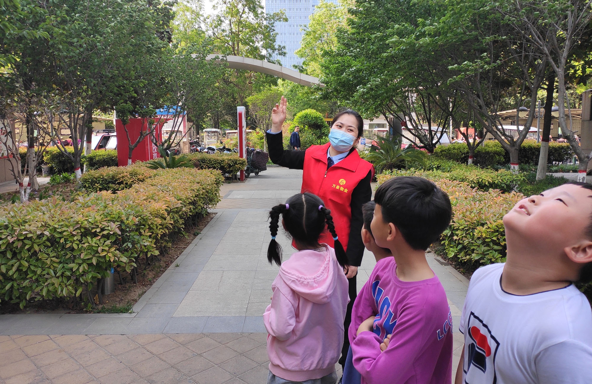 4月23日,万象物业党支部红色服务队邀请万象春天、万象蓝天、万象水岸香榭等小区业主参加“守护头顶安全,拒绝高空抛物”宣传活动,让大家充分认识高空抛物的危害,自觉杜绝高空抛物。图为该服务队队员为业主现场讲解高空抛物的危害。 邓悦 摄