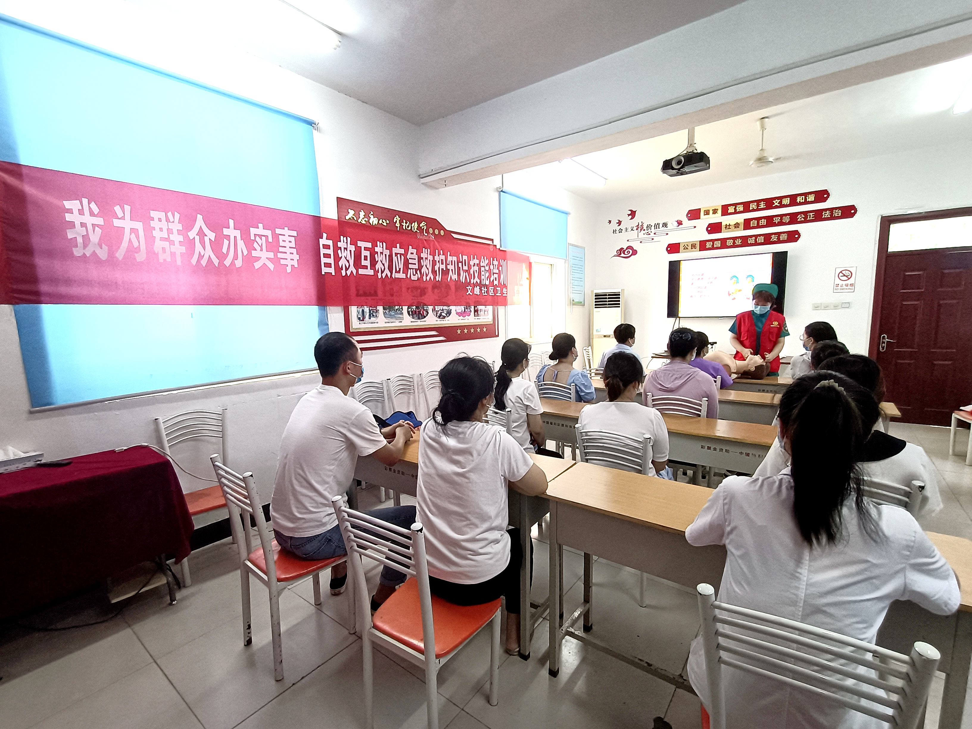 8月12日,魏都区文峰街道河西社区红十字志愿服务队携手市二院文峰社区卫生服务中心,联合开展“我为群众办实事,自救互救应急救护知识技能培训进社区”活动,通过现场急救理论与演示相结合的方式,进一步提高辖区居民应急救护技能,助力“五星”支部创建。图为志愿者正在讲解应急救护知识。 许廷合 摄