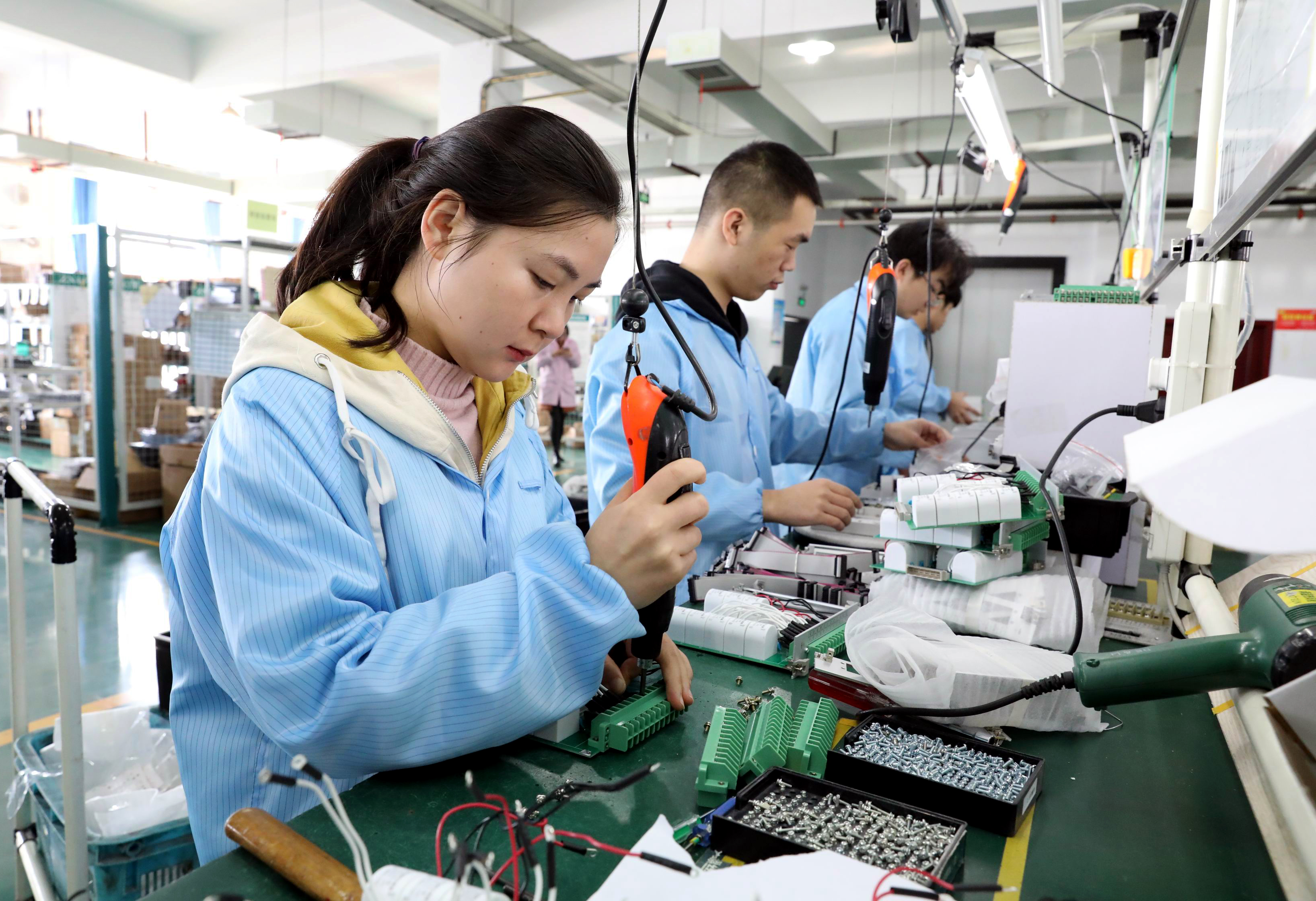 2月7日,许昌智能继电器股份有限公司员工正在生产线上忙碌。该公司开足马力忙生产,力争实现“开门红”。 本报记者 乔利峰 摄