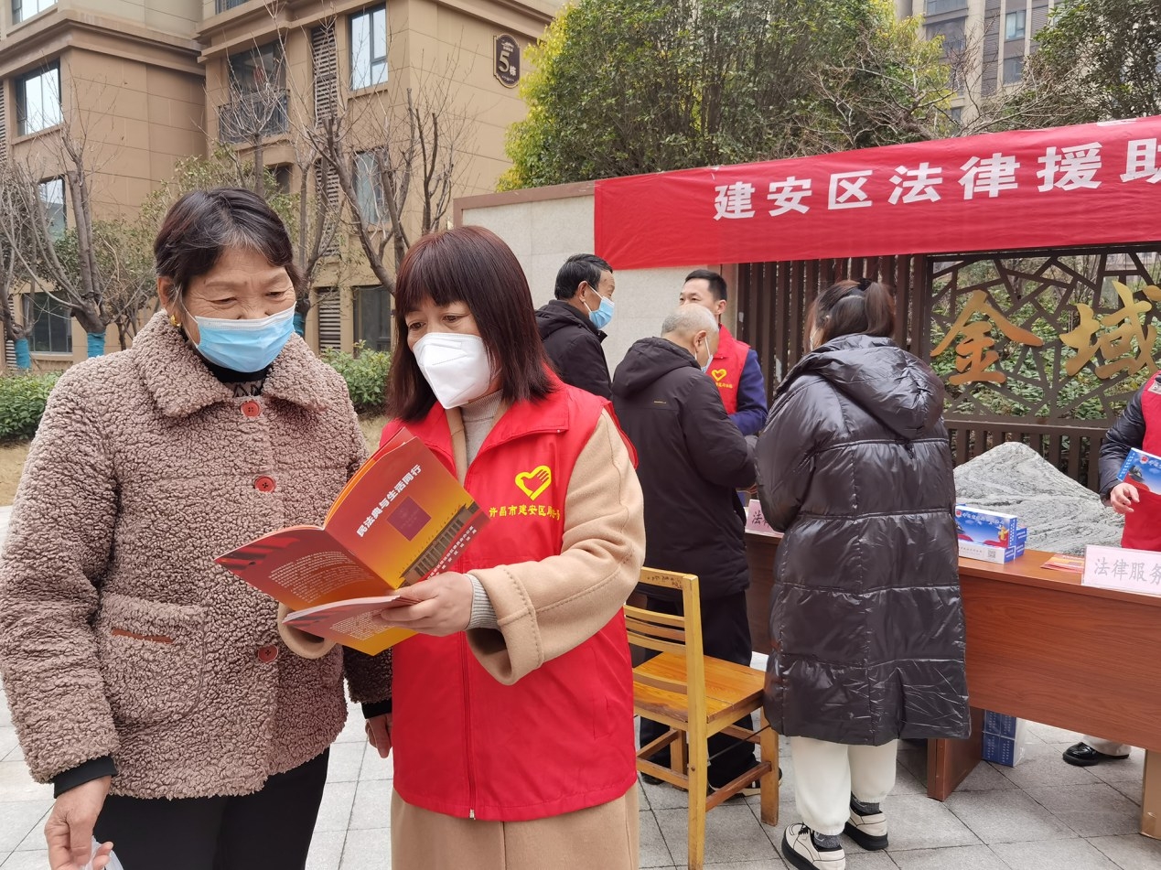 2月10日,建安区司法局普法志愿者深入许由街道办事处蓝湾社区开展法律援助志愿服务活动。活动现场,普法志愿者们纷纷发挥业务专长,耐心细致地为群众讲解法律知识、解答问题疑惑,受到了大家的一致好评。 徐晶晶 摄