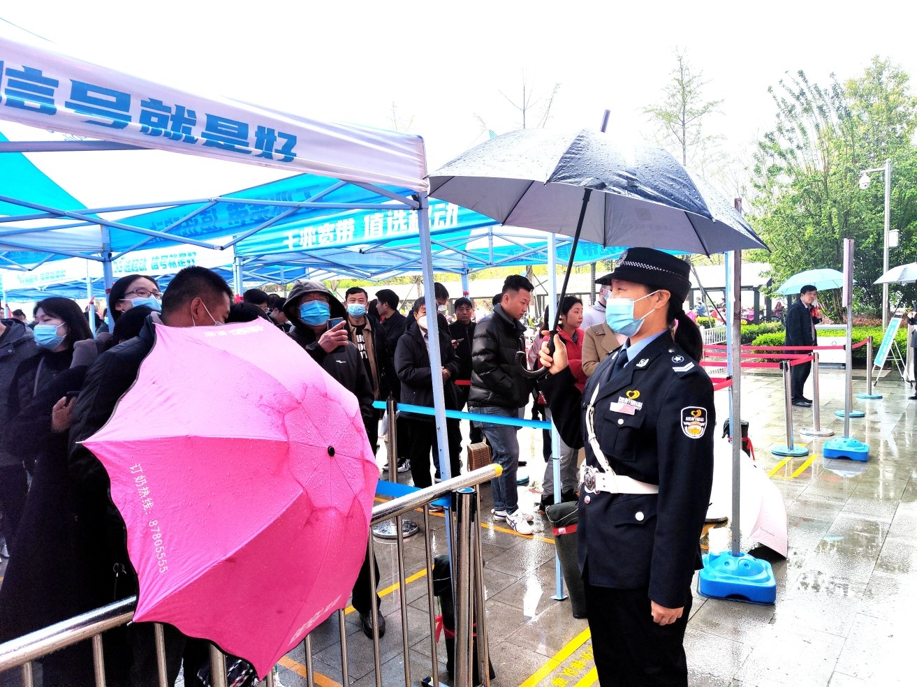 4月2日晚,许昌迎来春雨。4月3日一大早,远航物业工作人员就早早搭起帐篷,撑开爱心雨伞。他们穿着橙色、绿色、蓝色的工装,在现场忙碌,形成了一道亮丽的风景……